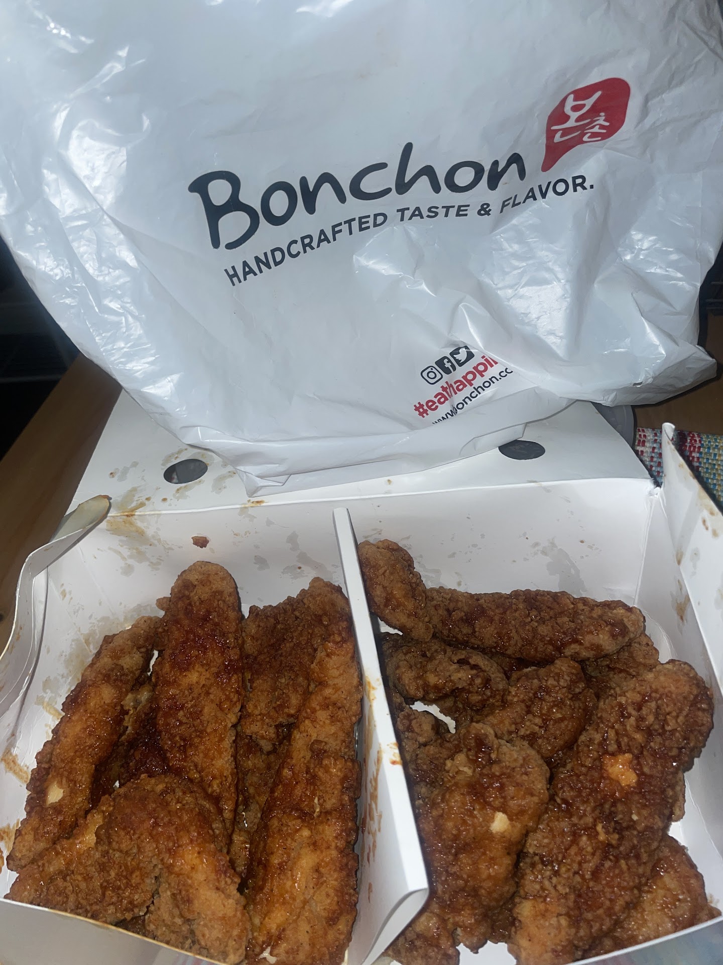 Read moreI decided to keep buying the chicken strips from the Natomas location because they still had the old recipe. We decided to order again today and I am VERY disappointed because they changed the strips here too. They are nowhere near as good as they used to be. They are hard, crunchy, and dry. They have way too much breading now and it's gross. You can barely tell there is chicken in the strips anymore each bite because it's no longer juicy. BonChon used to be unique and now they sold out to have cheap inedible chicken strips that I can just go buy at the grocery store. It's sad they changed one of the best things they had. My boyfriend and I will no longer be buying from BonChon and will try to find another Korean place that makes good strips.