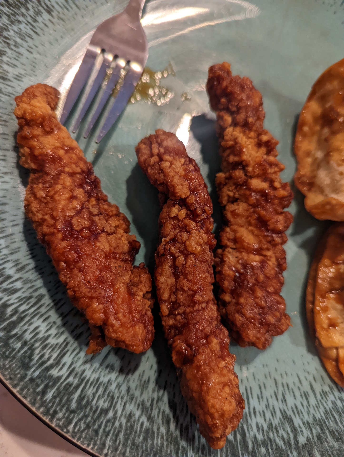 May '23 Edit: I tried them again after they said they changed to the new thinner strips they show on the website. I got what is in the pic that you see with the black nails. Still over processed "chicken". Very disappointing.