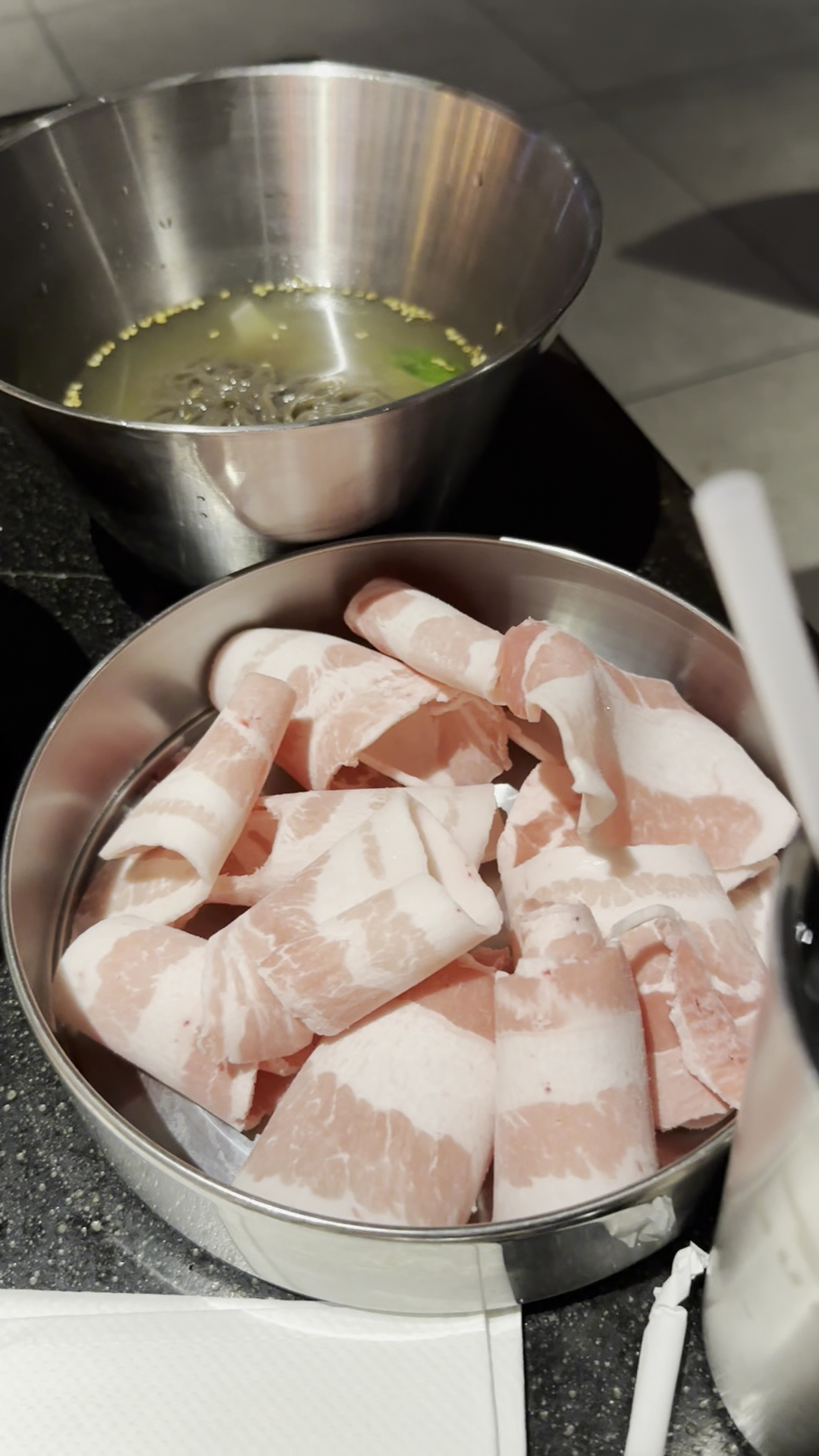 Food and meat selections are top-notch. The wagyu and non-marinated LA galbi were tender and well balanced between sweet and savory. My favorites were the big and small intestines, pork jowls, and big pork belly. Husband loves marinated meats. Brisket and wagyu are baby's đ favorite along with the seaweed soup. They have ban chans at the cold food bar, where you serve yourself on the traditional Korean school lunch trays. I appreciate this because you get only what you want. It's a pity to waste ban chans that are brought automatically and won't be touched. The cold bar lets you pick what you will consume.