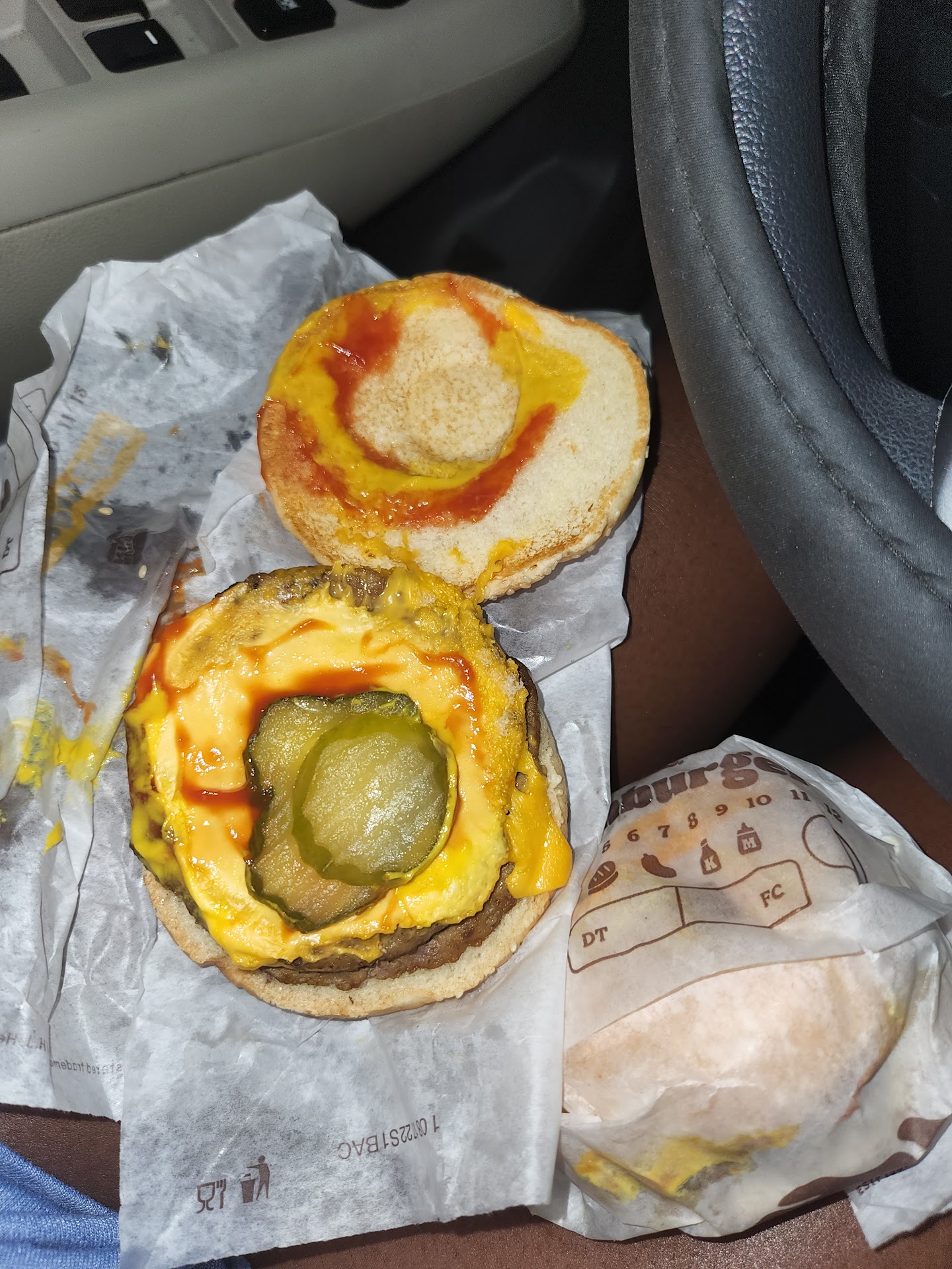 This is the Burger King closest to my house so it's the one I usually go to. I like to order through the app and pickup in the drive-thru because it's easier to get rewards points and they have more deals than they show at the store. Anyway, I didn't order ahead like usual bc I had a coupon from the mailer and you can't add those to the app. I double checked the hours right here on Google. They close at 1am, right? WRONG! I got dressed, went out in the pouring rain to get something to eat since my meds knocked me out all day and I didn't get to the store for anything to cook. I arrived at 12:30am and the recorder said they were closed when I pulled up to the speaker. It's done that before but usually someone chimes in right after to assure me they are open and ready for my order. Not this time. I pulled around to the window and paused to see a man suddenly stand up on the other side of the window. He was adjusting a headset but then just stood there staring at me. Never came to the window. So, I figured Google lied to me. I decided to pull around the front to check the hours on the window so I would know for next time. The window said they close at 1am 7 days a week. By this time, window guy had moseyed over to the door (I hadn't knocked or otherwise attempted to make contact with anyone inside - I had to get out of my car to see the tiny print on the window but hadn't said diddly-squat to anyone). There was another young man directly behind the first guy. I mean DIRECTLY behind. So close to him, they could have been conjoined. He was damn near glued to the window guys back as the window guy opened the front door and said, "We closed". I said, "Just checking your hours on the window here. Your window and Google both say you're open until 1am, just so you're aware". Guy attached to window guys back said, "We just changed the hours tonight" and window guy adds, "Yeah, we closed" I didn't say anything else as I got back into my car because the whole scenario was just weird. Were they being robbed and that's why window guys responses were robotic and pre-recorded sounding and why the other guy was glued to his back (to hide a gun maybe?) All of it was very, very bizarre. I don't know what it was but every hair I own was standing on end and I couldn't get out of there fast enough. Very unsettling encounter to say the least. If they weren't bring robbed, then everyone needs to know that their hours are flexible and not dependable and the window hours are more of a suggestion than...
