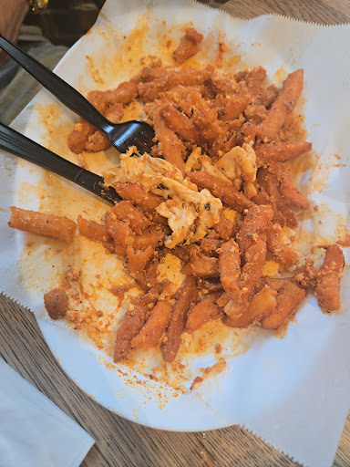 Sweet potato fries also no seasoning or sauce, cooked good otherwise. More enjoyable than the burger but was hard to get their salt to stick.
