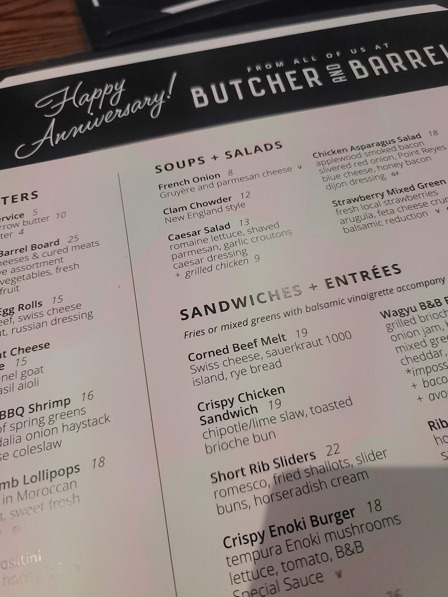 We'll definitely be back to Butcher and Barrel. This experience has changed my view entirely, and I highly recommend it for both food and exceptional service.