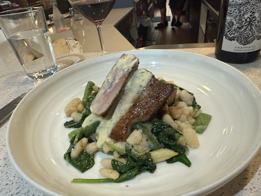 Read moreStopped into this cozy Mom and Pops Italian eatery for an early Mother's Day dinner. It was warm that day and the patio was nicely shaded and the large fan kept the air moving so we were comfortable. This cute bistro, ambience reminiscent of an Italian provençal lifestyle, is in a strip mall, but you wouldn't even feel that. We started with delicious drinks. My son had an imported Italian soda with real ingredients! I had a refeshing peach and pear bellini. The only reason I gave 4 stars is because the menu did not have many light vegetarian pasta options that I couldn't make at home and the portions were gigantic! I would say this could be a family style dining experience. My son ordered the Pesto Trapanese and it was delicious! He enjoyed his leftovers. I ordered the pasta alla norcini with broccoli Rabe and it was pretty heavy. I had leftovers but didn't translate well heated up the next day. With that said, the food was delicious freshly prepared! The housemade chocolate ganache is a must try as well. Our lovely server and Katie, one of the owners, were so hospitable and we had a wonderful experience speaking with them. The guests that were there were obviously regulars. We overheard several warm conversations with new and established customers. We will definitely go back and share a...