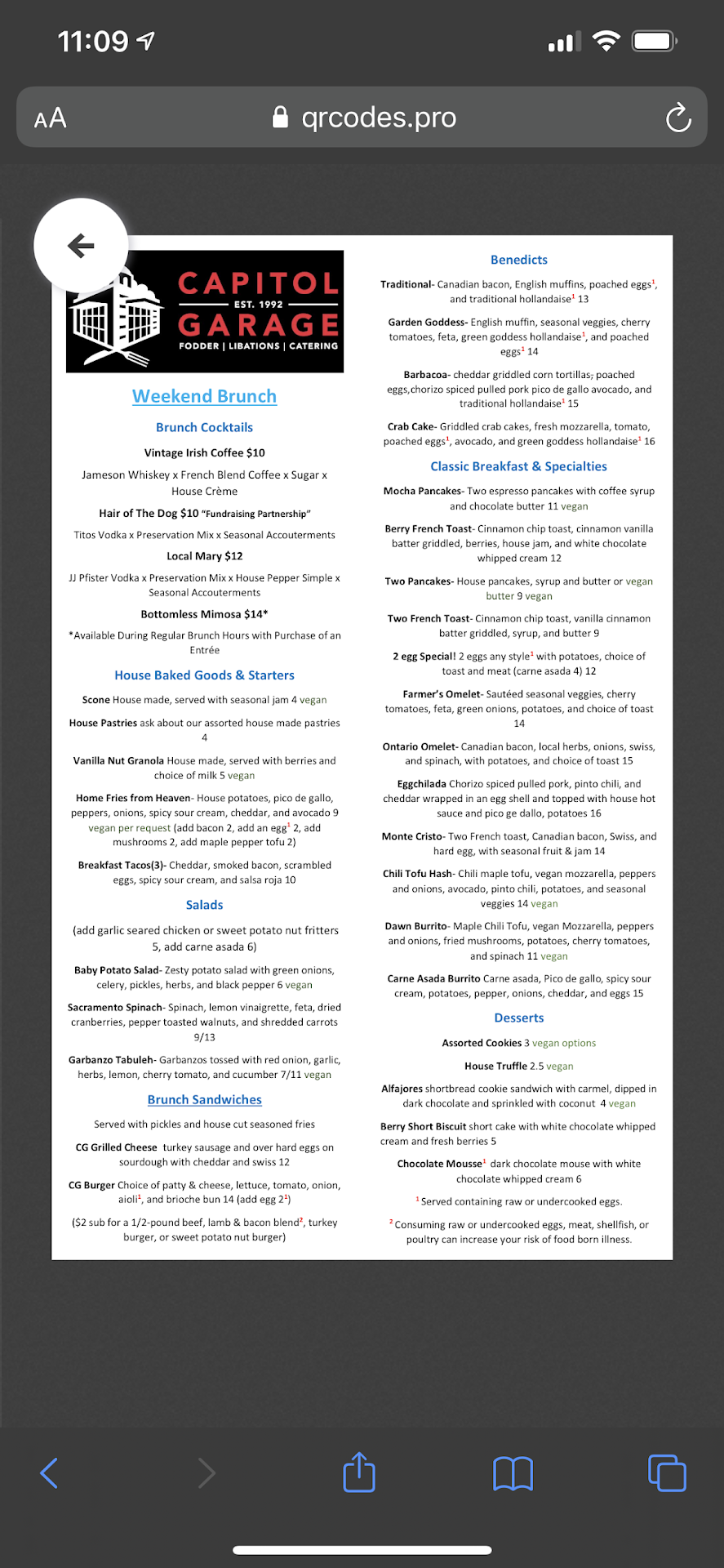 Read moreCapitol Garage always used to be one of my go-to spots for brunch pre-pandemic, and my out of town friends would always request to go here. Had a reservation for brunch this Sunday and the food was inedible. Most of my party ordered a benedict, and they all had the same problem.