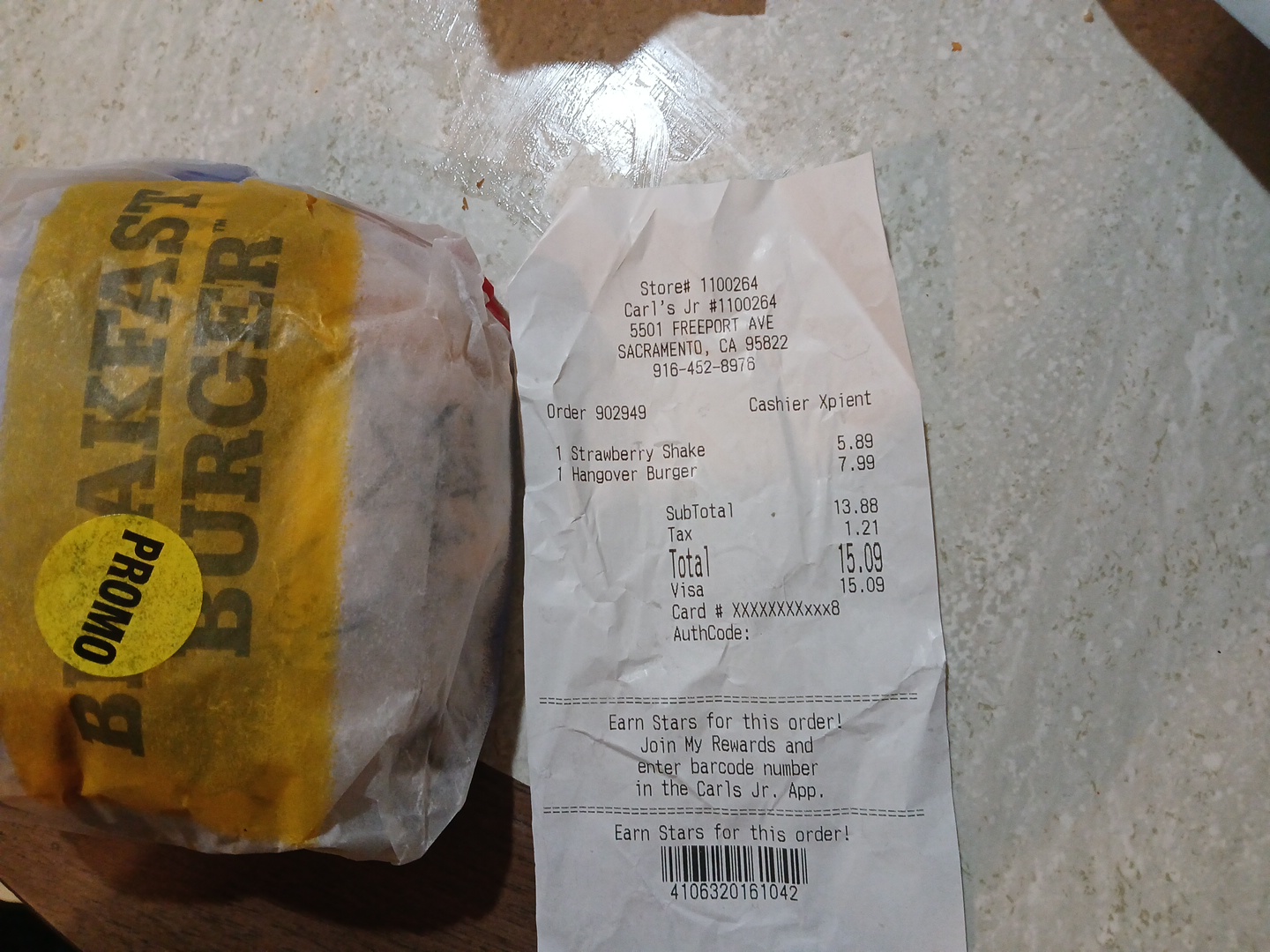 I came in randomly at 5 something (pm), looking for something to eat after working a 13hr shift, with no lunch break, really just wanting to eat and go to bed. Tired, and I, not being specific on how I wanted my shake (due to me riding a motorcycle) I asked "Jerri" if the shakes were usually this thin? She replied with a very curious look and I said, I apologize, I'm riding a bike and have to put it in my saddle bag, I should have asked you to put a lid on it and offered to pay more. Jerri replied with, (before I could answer) I can add more ice cream to make it thicker? Jerri did not have to, but she went the extra to offer. I absolutely appreciated it and offered to pay for another cup if I needed. It was fantastic to have outstanding service by Jerri at this Carl's Jr.! So, I'd say, stop in, and if you see "Jerri" say Hi!/ but I'm pretty sure she'll be at you to it. I honestly at this point don't care how hot my meal is, Jerri absolutely made my day/night!...