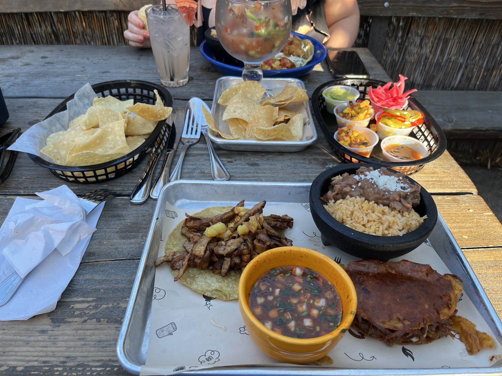 The tacos and portions were very satisfying. Quesabirria, Al pastor, fish and diablo shrimp. All bomb. Fresh ingredients, very tasty, came out quickly (under 10 mins on a busy day). The downside where the margaritas. I got the Mezcal margarita, which taste, like medicine, and my wife, got the Paloma, which taste like well tequila. Watered down and gross, pretty disappointed with those. I don’t think I will take another chance on a $12 margarita that tastes that bad, just get beer instead. Or go to Mezcal on Broadway for solid margaritas for half the price.