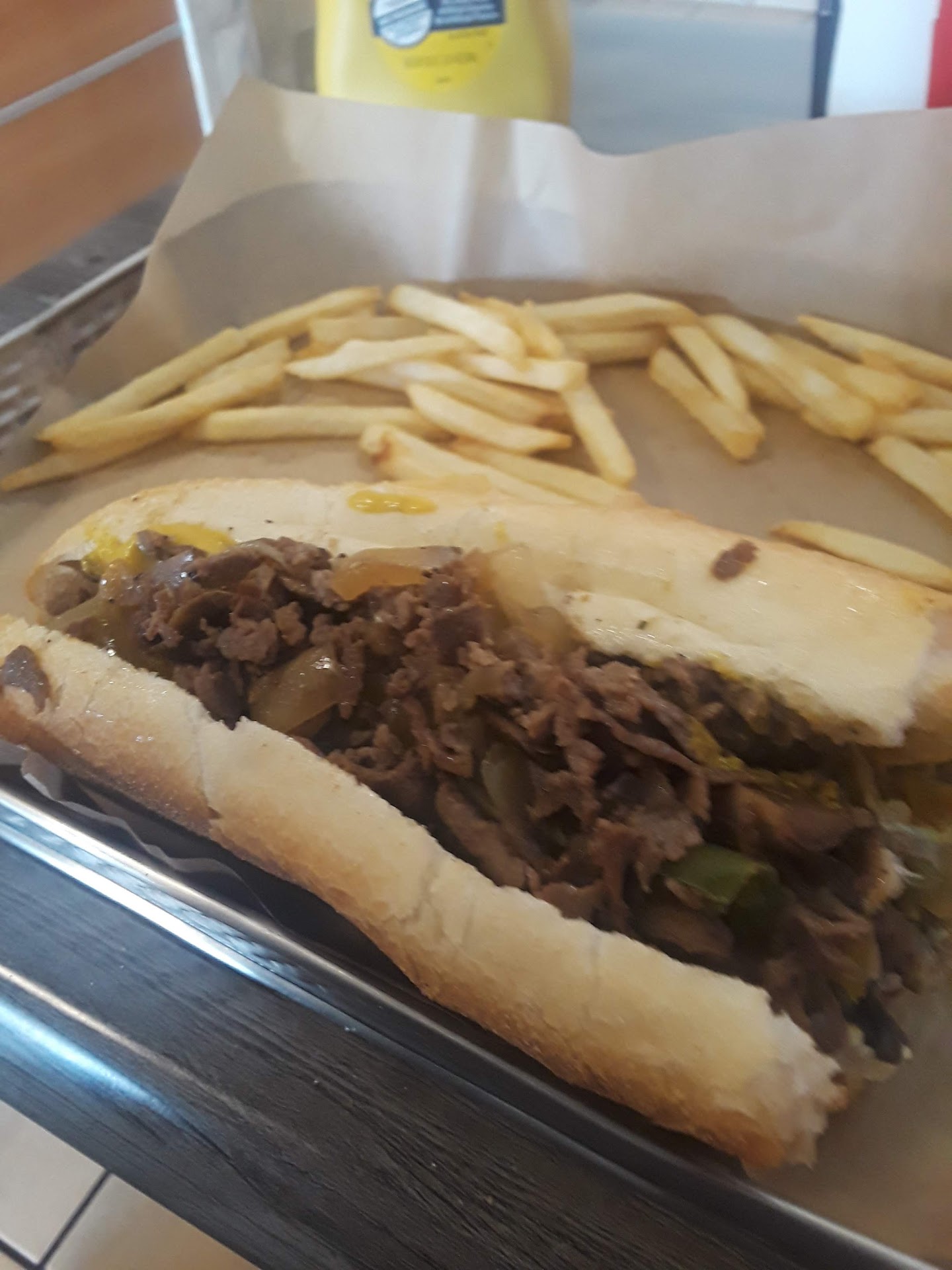 Ā Ā Ā Read moreCheesesteaks. A nice place to have a meal. I ordered a large original Cheesesteak meal and they had a special going on for $11 (Small Drink with Fries included). Have seen more expensive similar, so a good price point. And now, the review: that bread was a little crusty on the exterior BUT very tender and soft after the bite. They have a condiment bar and a sauce bar for those who like Mustard, Katsup, Hot Sauces and so forth. The Meat was tender too and the cheese was plenty perfect for a perfect chomp down.