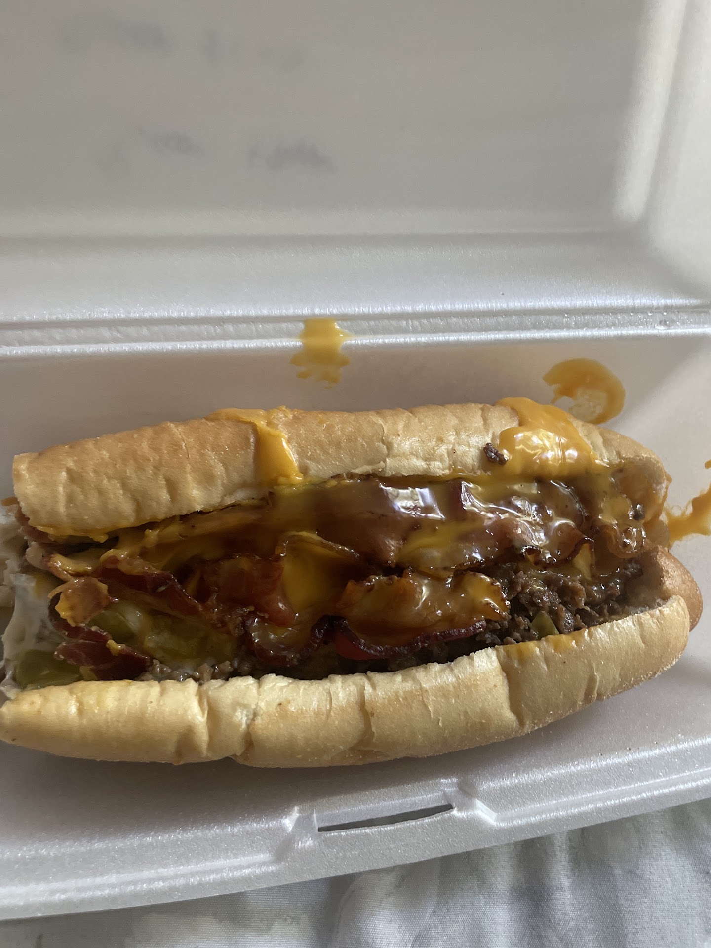 Philly Cheesesteaks are among my favorite hot sandwiches to eat. From the time I happened upon this spot which is up the street from where I stay, Iāve been HOOKED!! The Bacon Philly Cheese comes with grilled onions and two long pieces of bacon on top. It tastes like it could have more bacon chopped up and added into the steak because the bacon flavor is all through the sandwich, but besides that: the steak is thinly sliced and cooked to perfection, the bread is always soft and fresh, the flavor and quality of cheese sauce is on point! I have zero complaints. The Bacon Philly is the only flavor I have tried out because itās just so delicious I find myself craving it and I donāt want anything else at those times, but one day Iām gonna try one of the other options. They have a Pizza Philly, and an assortment of other kinds including Chicken Instead of Steak if you want. If you love Cheesesteak then this is a place...