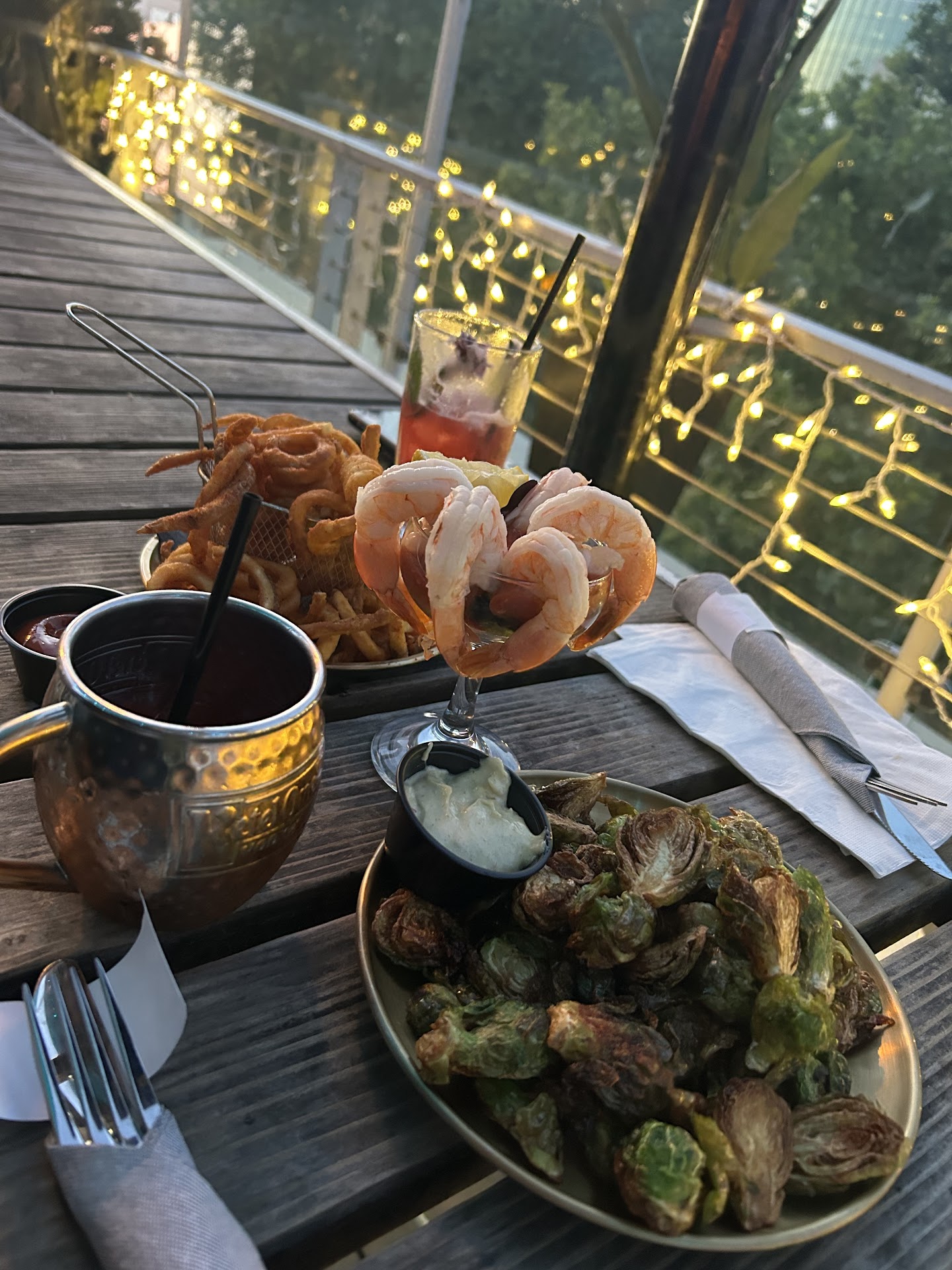 We had a nice time when we got there, but it did take us about twenty minutes to get a drink at the tables upstairs outside. Our server was pleasant untill..., we ordered some curly fries and then the shrimp. The shrimp was very mediocre. Our issue is the bill. I'm a sixteen year bartender. So when I see a bill that has extra drink charges on it that I know were not ours I ask questions, but she insists that they were, i had two cocktails, both of those cocktails were the same, and included the twenty one seeds, grapefruit tequila I also asked for 2 side shots of that same tequila as well. So in total 2 cocktails and 2 shots. My friend ordered the mule and a side shot of tito's. He then also ordered a second drink of just tito's and soda. Our server then proceeded to bring out a shot of vodka for me, Instead of my twenty one seeds tequila for the second cocktail that i ordered. I told her the order was incorrect and she took it back, but she still charged me for the shot of vodka that I never ordered. I had ordered the side shot of twenty one Seeds tequila to go with my cocktail. So she ended up charging us two shots of well vodka and another shot of well tequila on our tickets. We tried to tell her about the overcharge, but she insisted that we were not correct and that the bartenders gave her what she asked for. I'm a bartender like I said, and I have made mistakes. But she insisted that we got what we asked for. I know exactly what I had and I know exactly what my friend had. On top of it, she went and gave herself a twenty percent tip. I read a review before that. The bartenders or servers were putting twenty percent for themselves before they hit the hundred dollar mark. Our bill came out to 204.00 in Total and that was including her forty dollar tip at 20% that is not okay that we were charged for drinks that we did not have.And that she went ahead and gave herself twenty percent. We didn't want to sit there, and argue over a couple of shots, but I knew that I would come home, and write this review. It is not okay what goes on over there with the check. Everybody needs to absolutely look at their check and make sure that everything is correct. The other review when somebody complained about the check was absolutely correct.That place will do that. I won't be taking my business...