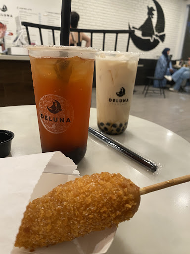 Read moreDeluna is a go to for their House Milk Tea with Boba. Itâs located in a shopping center in Natomas. They have a patio to eat outside and tables to eat inside. They have a Ziosk to order from if you donât want to wait in line. The service is always very friendly and welcoming. Itâs a comfortable and chill place to eat and or drink whatever you order. The desserts are yummy, I wish I had pictures for you. I decided to try their Tteokbokki because it was a new item since Iâd last been there. Iâm a vegetarian so I asked for no fish cakes. It was good, but as you can see I only got 13 rice cakes. I would have liked seaweed or kelp in there. I would recommend if youâre first trying it and not sure if youâll like it, otherwise I wouldnât recommend getting it here. Definitely try the desserts and teas...