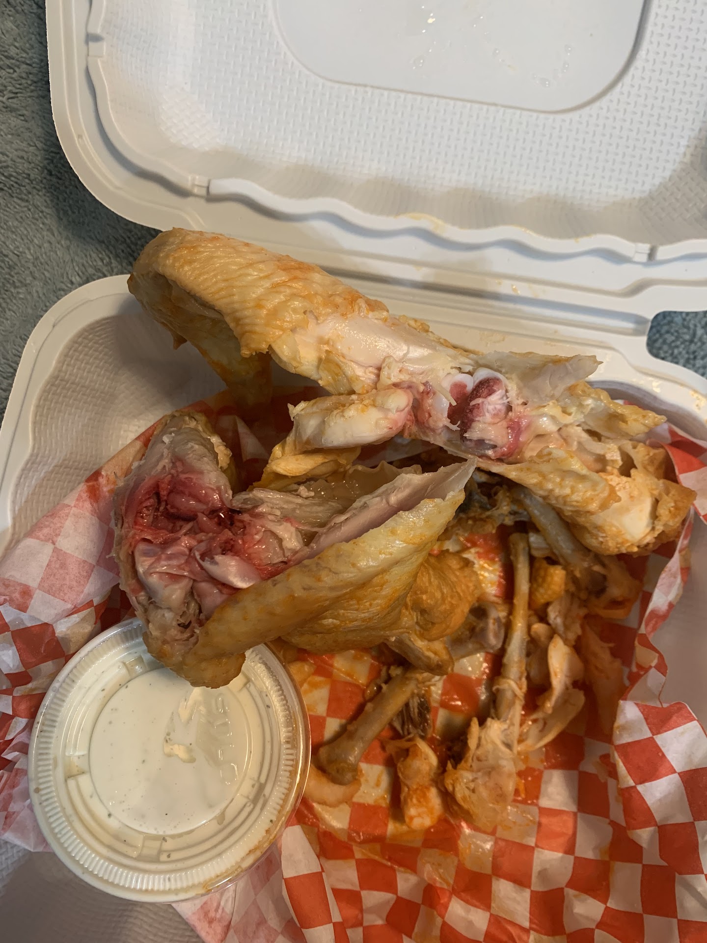 These wings were excellent! I was expecting to get the normal legs and tiny wings that you get at most places. However, this place serves up full on large chicken wings! They were fried to perfection and seasoned with a nice zesty buffalo sauce.