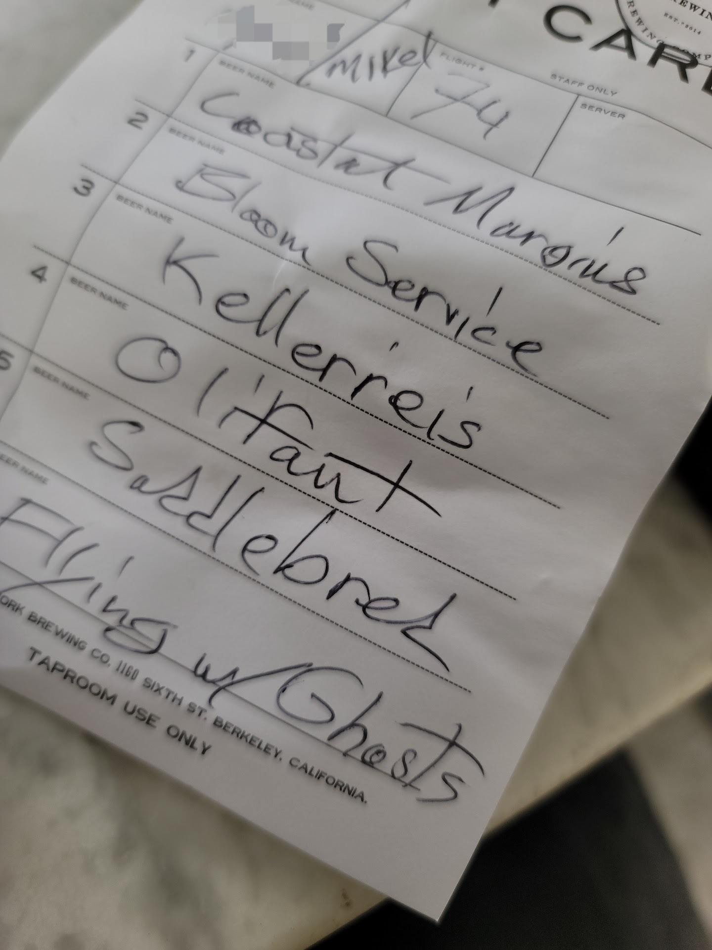 The beers - I don't remember the exact names but the theme was pretty consistent here. Their dark malty beers were the best, the sours are unique fun and tasty. The IPA, Pale Ales and the one Belgium I tasted were not great. Low 2/5 for me.