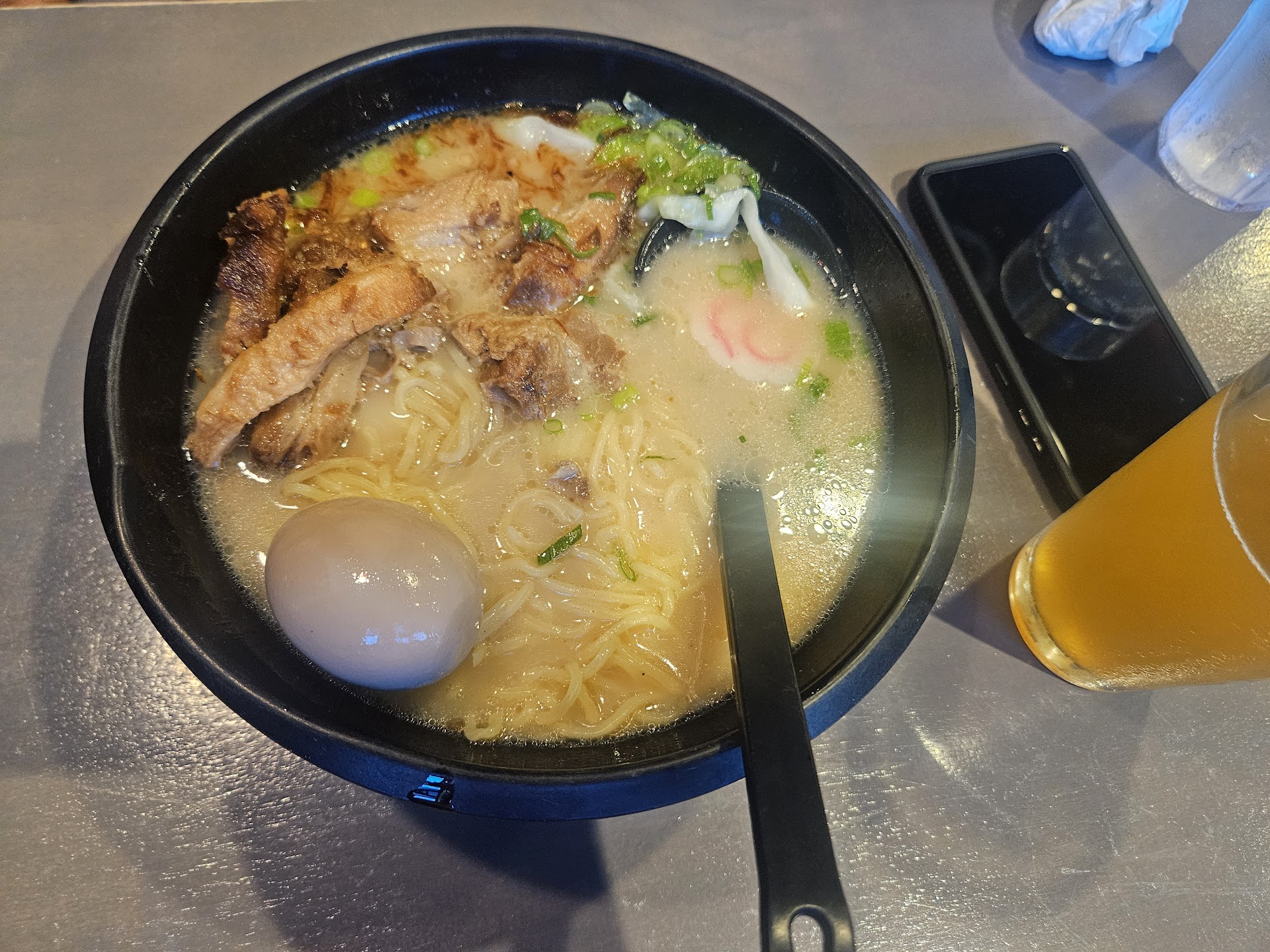 This was a quaint place to eat. The servers were very nice (college age), probably the nicest thing about the experience. Their TVs and their featured shows, including food and extreme sports, were also a very nice touch. The white frescoes on the wall are all dirty and need some retouching. We ordered Shoyu and Tonkatsu Ramen; both weren't plated quite right (toppings were on the bottom instead of the top), and the heat near the noodles was missing a bit as a result. I was hoping for something coming out that had the right temperature and balance. The taste was pretty good though and not too salty 😋. We also ordered the garlic shrimp rice plate and it was good with the rice (otherwise the saltiness would have been overwhelming). Overall the food was decent but certainly left us uninspired. Admittedly we are spoiled by the quality of great Ramen in the SF Bay Area, like Orenchi (South Bay) and my personal favorite the Ramen Shop (Berkeley).