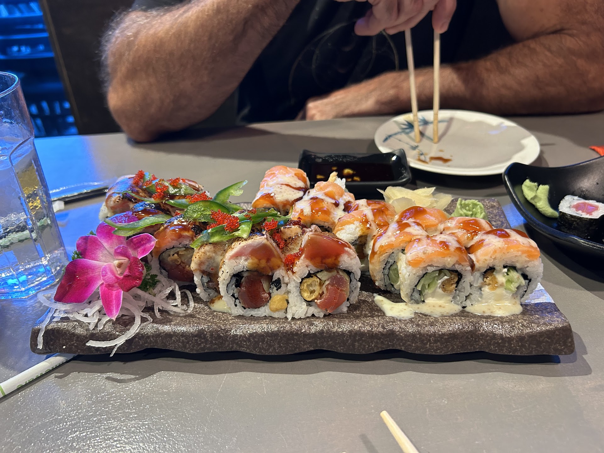 Read moreCame here after seeing multiple raving reviews. After standing at the waiting area for 2 minutes being ignored by staff, finally a voice from behind a wall said “sit wherever”. While our order was being taken, waiter just walked off when he believed we were done ordering. Plates were never cleared from the table when we were done with each portion. Didn’t wait too long for food but when it came we immediately noticed it was all absolutely drenched in sauce. Rolls had very little flavor and sadly Safeway Sushi gave this a run for it’s money. Wasn’t busy inside but staff never checked in on us or asked us if we needed anything or refilled our waters. Salmon skin hand rolls were actually above par and the reason this review is getting one star. Had to flag down a staff member when we were ready for the check and when my card was brought back to me, it was sat down in front of the table without a word said. Sadly it was an awful experience where we began feeling a bit uneasy in our stomachs during our meal. Maybe they were having an off day and maybe our server was training but sadly it was not a...