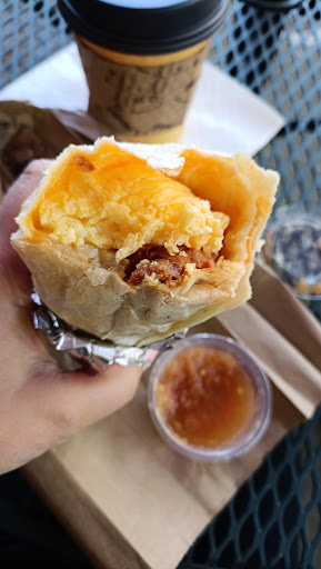Visited during the noon hour, and had the steamed rice w/ teriyaki chicken (a lunch special). Had a choice between regular or spicy sauce.. I chose spicy but it was barely spicy at all. The food was ready, they just had to put the plate together and then I paid, so I'm not sure if other items take longer to prepare but this dish had no wait time. Food w/ soda was $9 and change. No line at 12:40 but could've been busy earlier. Food is ok for a cafe. Not outrageously good but decent. Salad seemed to come right out of a bag i.e. pre-cut. Again nothing fancy but wasn't necessarily expecting that. Oh and note that breakfast ends at 11am. I actually came here for breakfast and though the breakfast menu is huge I saw nothing indicating...