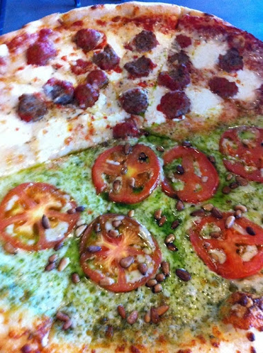 We opted for the pesto pizza and went for the "New York Size" which is underwhelming; 20-24 inches, a standard pizza that would be treated as "large" anywhere else. The price came out to a whopping $40 and when we finally came home and opened the box we found: a regular cheese pizza. At this point we were too hungry to go back and wait around for another half hour while they tried again so we decided to just eat what we had and hope it was good.
