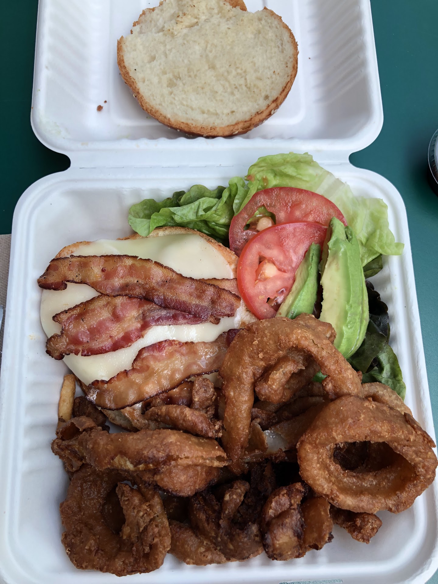 Iāve gotten the burger and chicken sandwich and both are tasty and filling. They donāt skimp on sides, either. The onion rings are bomb. The only odd thing is they donāt add any spreads - itās all condiment packets. But you can ask for BBQ sauce if you want.