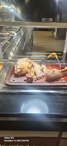We went about 7:30pm on Friday evening hopping to miss the rush well we did, however the food was not up to anything tasteful the salad bar out of dressings the stims on the spinach were as long as the spinach is around, the meat that they called prime rib was prime dry, it really did look and taste like it set out and been reheated in the microwave oven and installed of the person cutting the meat off the line and get a better cut. And if any food sits there for two to three hrs like some veggies, soups beans and no one has touched them take them off the line put something different. And the pastry again yheu looked bad like they have been sitting there for hours the pecan pie looked wet like something was sprayed on the slices again they to have been sitting their for at least an hour or more and there wasn't any fruit of anykind at all set out to eat. The plates were still dirty. The plates also had cut marks from people digging in cutting their food take those plate out of use. Not only does it look ugly the next time you go and cut your food and see it plastic coming up with your food as well the knives spons an forks were also dirty. And the tables did not get cleaned until someone or a family needs to sit down, yes I said just that! Dirty crumb on the tables...This places has went down hill fast and management. That's it there is no management that I've seen at all. And last the young kids playing around and not paying attention to what they are doing an as a customer the last thing you want to see when you inter a restaurant is people/kids playing games of any kind. It makes the rest of the restaurant look bad in this case however it was bad all the way around all together this restaurant needs help. And new management that cares about the quality, cleanliness and respect for the company, not just pick up a pay...