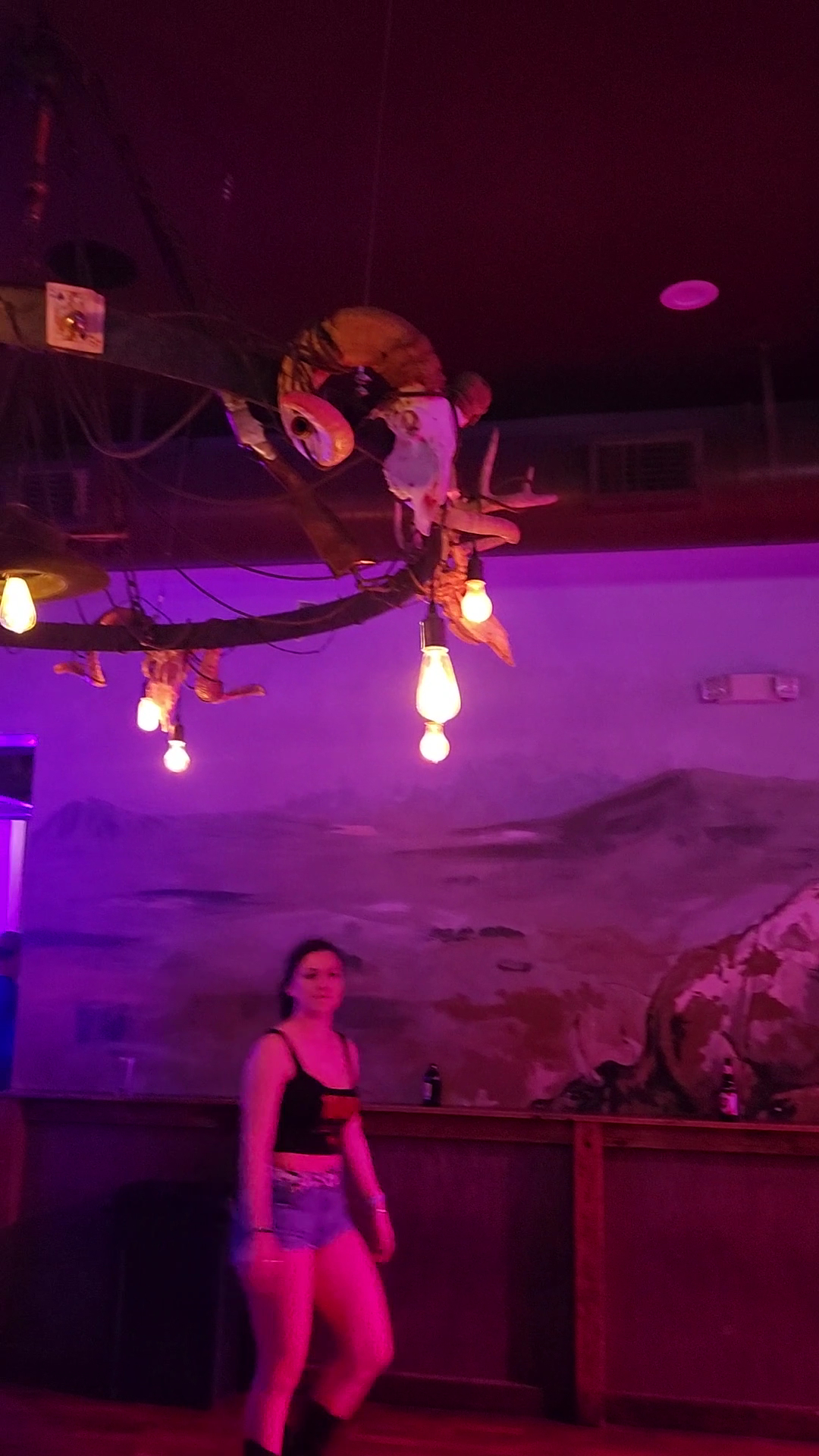 There's 3 different rooms. The 1st room is mainly the bar, which you can sit at on stools or sit at the booths on the opposite side. There's a water dispenser located in the back. The 2nd room is where the stage and dance floor are. Some of the staff were line dancing on stage, while the others were line dancing in the middle of the dance floor. There's also some booths in the front. The 3rd room is empty besides a couple of booths in the front and back, and also a photobooth in the front. You can view the dance floor from there and just chill if you'd like. There's bathrooms located in the back of the 1st and 3rd room.