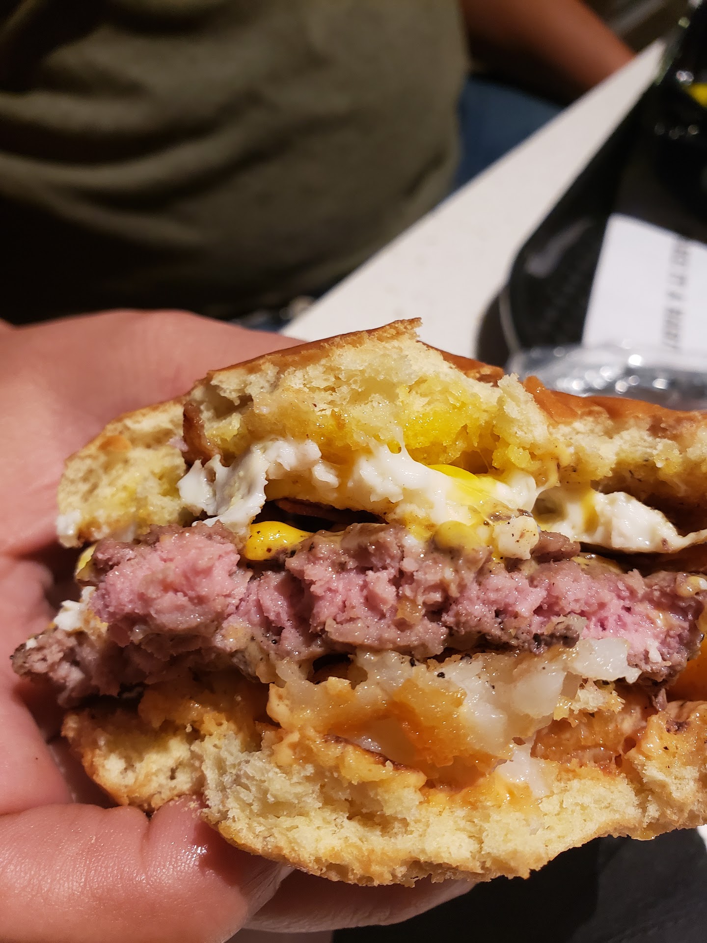 The burgers were okay. The taste was great, but the patty was miniscule. I really expected more for $8.29. We ordered the pretzel buns that is why they were $3 more expensive than the regular burgers.
