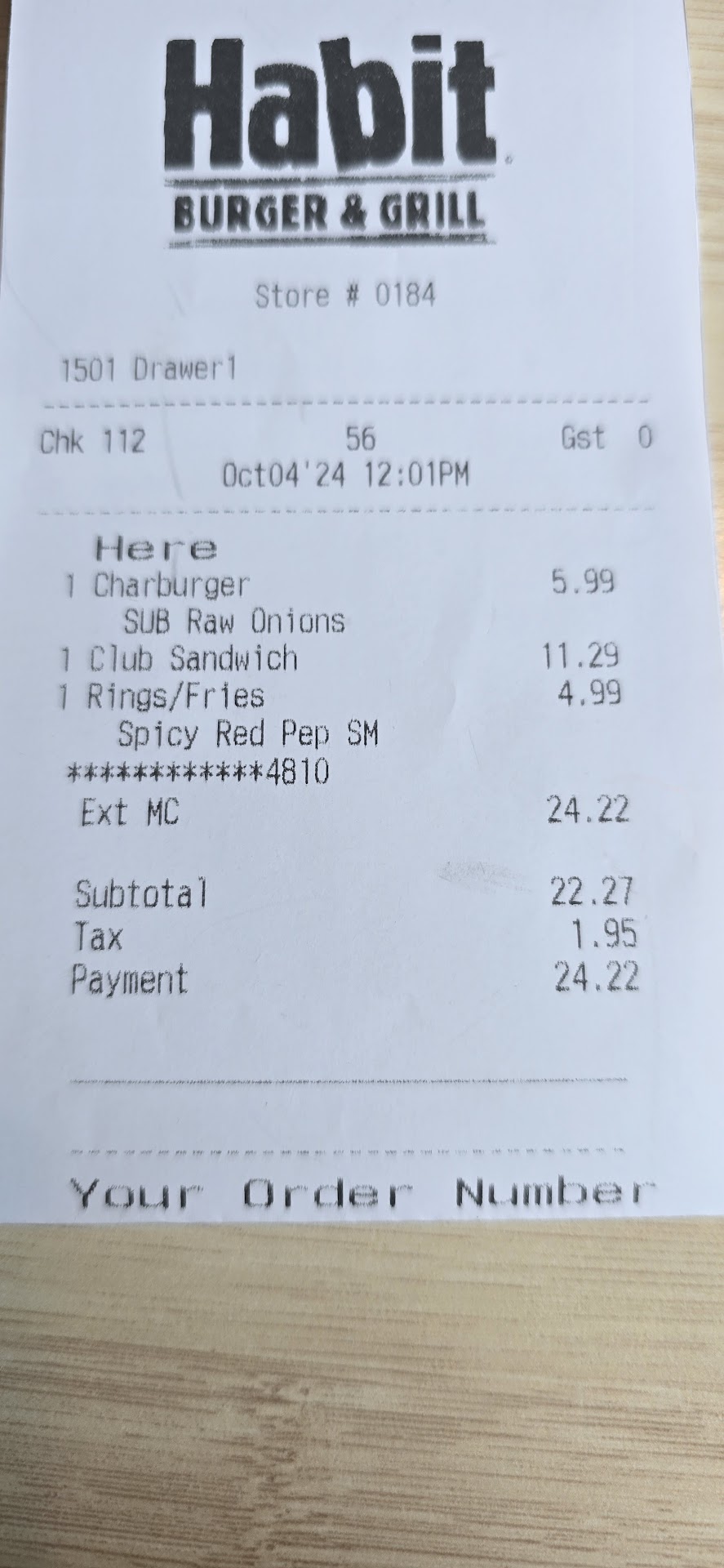 Read moreI had a really bad experience at this location. I did a curbside order from my home about 15 min in advance so I woudnt have to wait. In the app I let them know i would arrive at 12:50. Got there at 12:48, I parked in the designated curbside parking, used the link to let them know I was here and still had to wait 10 extra minutes for my food. I finally got tired and decided to walk inside (with my toddler) . My order wasn’t ready yet. Finally after 5 mins waiting in the pick up area someone approaches me about my order , they finally bag it up, (it wasn’t even bagged yet) I’m about to leave and realize they missed my green beans . So I go back in & ask for them. I saw that my ranch was also missing (which I paid 50cents extra for on the app) so I ask the guy if I could get the ranch I ordered. He gave it to me and I left. The main reason I do curbside is because I have a child and it’s hard for me to take Her in & out of the car. I go to habit all the time on capitol & they do a great job. Not sure what happened today at the delta...