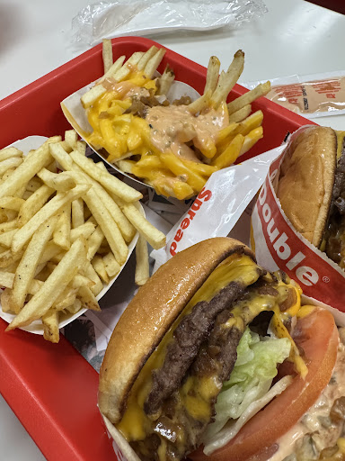 Ā Ā Ā Read moreI absolutely love the food and the service here. The wait is normally long (no surprise) but I think it is personally worth the wait. I have frequented here multiple times over the past couple of years and they have never failed to disappoint, a little surprising for me since I'm used to many fast food places messing up at least once. Their food has always been made to perfection, succulent and filling for the cheap prices without ever making me want to vomit from any greasiness. The menu is basic, classic and as expected (their burgers remind me of Krabby Patties), but the food is definitely fantastic regardless. Everything tastes fresh, and the staff is wonderful, no matter what time of day you visit or which employee is serving you. I have been inside and constantly through the drive thru and they always make sure to greet you and ask thorough questions (onions or no onions? In the car or to go? Any drinks or anything else?). If it's too busy for their drive thru, they normally have an employee taking your orders before you reach the drive thru speaker, to speed up the process. I tend to order the double double, the cheeseburger, animal fries (secret menu item), and/or a shake. The burgers are juicy and the vegetables taste fresh, and although the fries may taste plain to some, I've grown to like them because they actually taste like potatoes (when I first tried them when I ate unhealthily, they weren't salty enough for me). I love the caramelized onions and the sauce for the animal style fries (they offer to take out the onions if you don't like them). The shakes are a bit sweet, especially the strawberry, so I tend to order the vanilla instead. Overall, the experience here is overwhelmingly satisfying with the only issue being the wait. If you're hungry and impatient, you should probably not visit here because I would hate for these sweet employees to deal with grouchy customers and their...