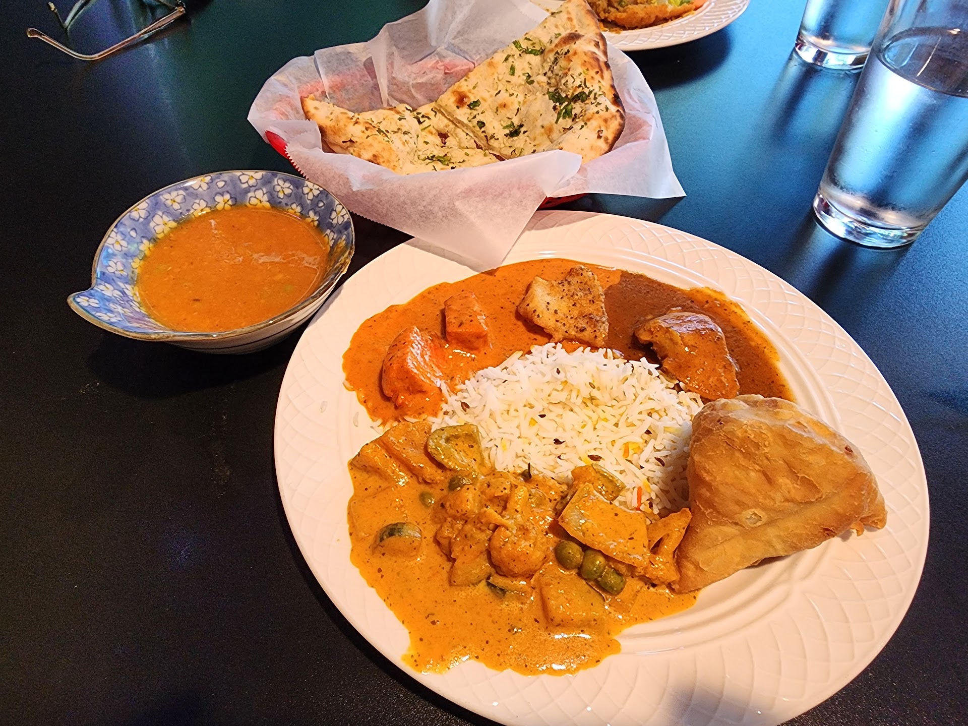 Read moreCame here for the Indian lunch buffet. . The buffet had a nice selection of vegeterian options. Such as veggie korma, saag, chick pea curry, lentil curry, fried veggie pakora, salad bar. . For the meat options, butter chicken, curry chicken, and tandoori grilled chicken. . Saag was good. It had a nice consistent sauce and it had a nice mild flavor. . Veggie korma - creamy and flavorful. It was like my to go to dip even over the butter and curry chicken sauce. I'm a meat eater so it says the sauce was bussing for a veggie option. . Tandoori chicken - thick marination with the masala which us red. It was a little on the salter side. But the chicken drum stick was grilled to perfection. . Salad- it was mixed already. But without the dressing so you can add your own dressing. . Garlic nann- I don't usually eat nann much but this was pleasing to the eyes and camera. It was actually really fresh and good. Like authentic. . Overall it's a hole in the wall type of Indian food lunch buffet. I believe they serve dinner buffet as well when I kind of looked at the sign. The buffet was 20 bucks per person. It was an experience for lunch buffet. I would come back again. Hope this review helps and thanks for reading. Follow me for more and rate the review. Have a...