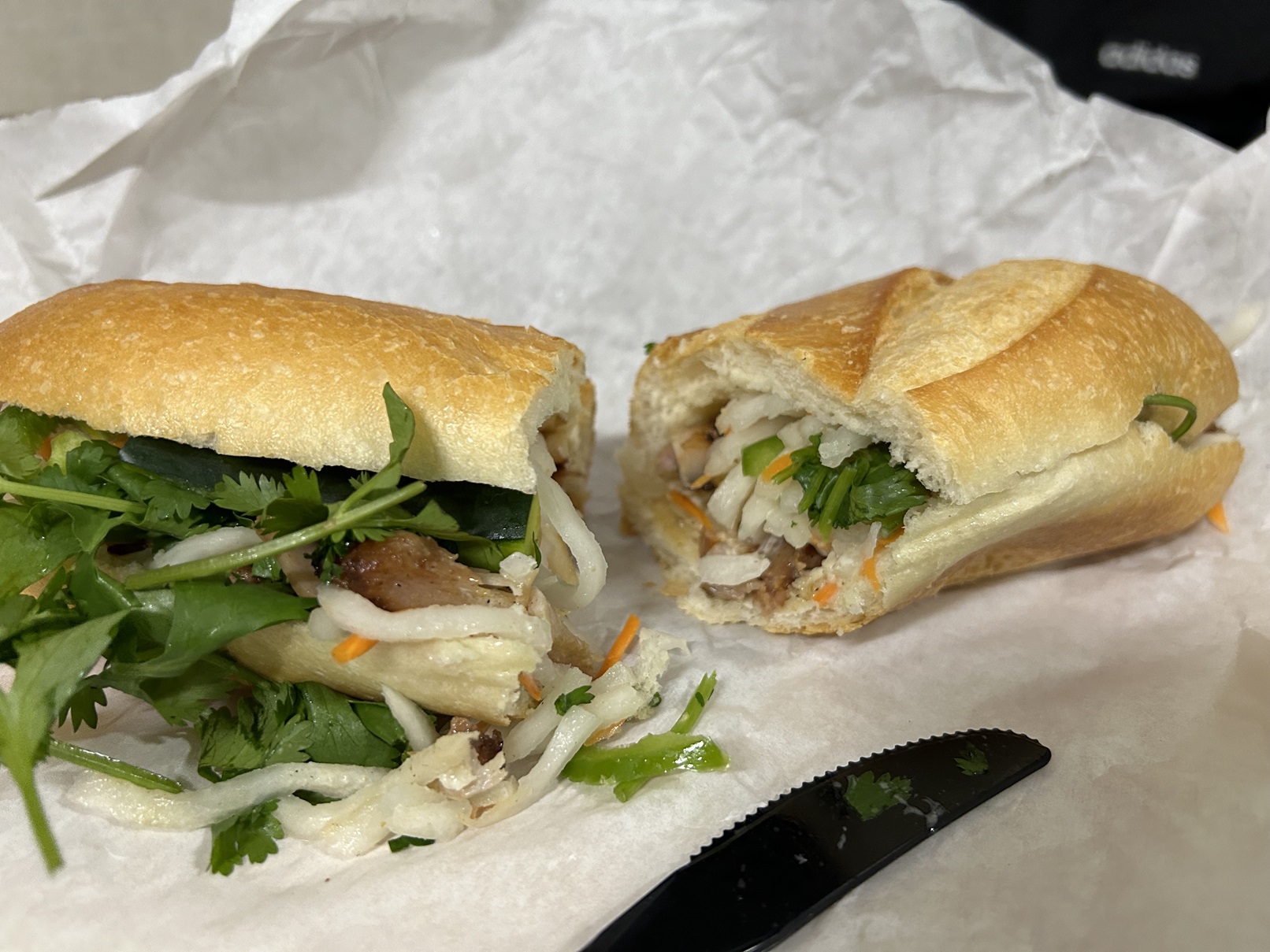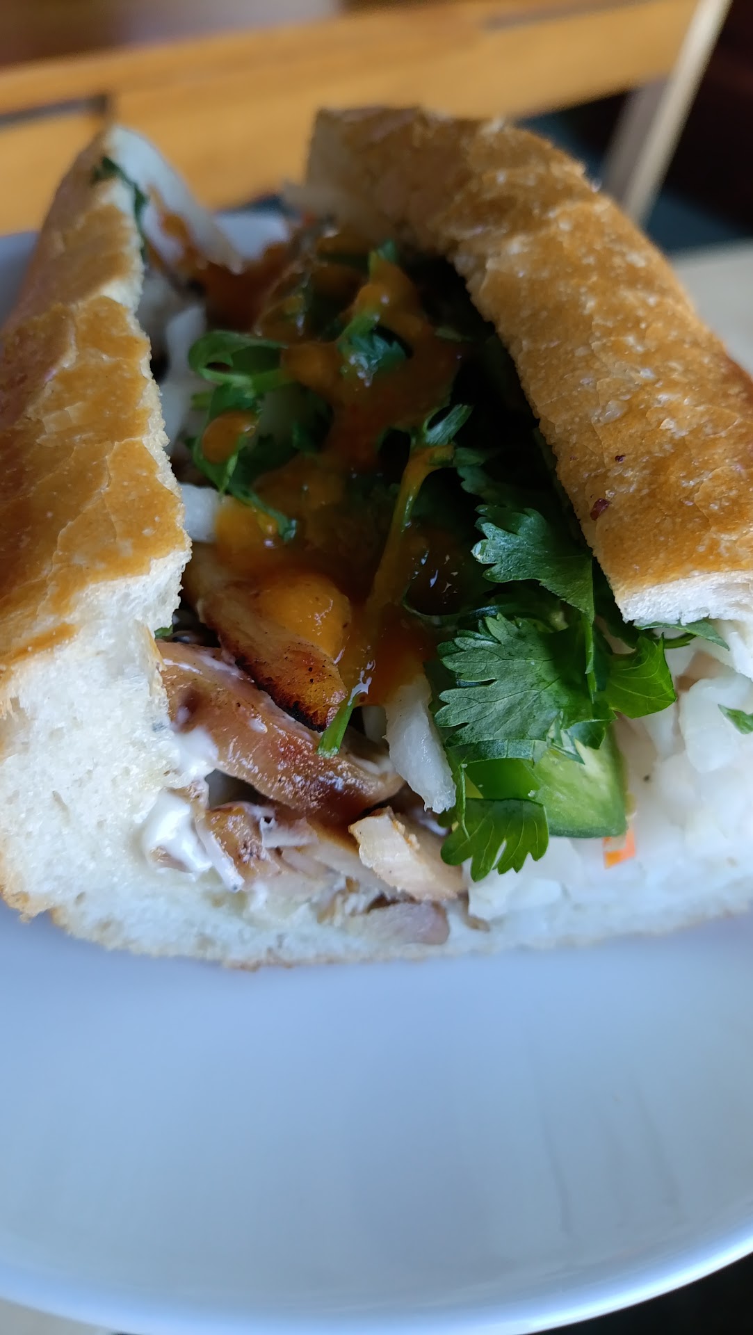 Read more$8.99 banh mi sandwich. Is this the best value lunch in the grid?! HUGE portion. Lots of meat inside. Packed with pickled veggies and fresh herbs. Sliced jalapeño for kick. I tried pork and chicken today--and had a hard time finishing two halves plus I have an entire sandwich for tomorrow! Pork is probably my favorite since it is flavorful and moist. Chicken was a close second, leaner but also great. Bread was perfect and fresh. Guy at the register was talkative and friendly. I saw the woman in the kitchen listening for my order. By the time I paid, both my sandwiches were ready and wrapped to go in the window. I am so impressed with their service--especially for lunchtime it was so speedy! They accept cash and card payments. And convenient bike parking...