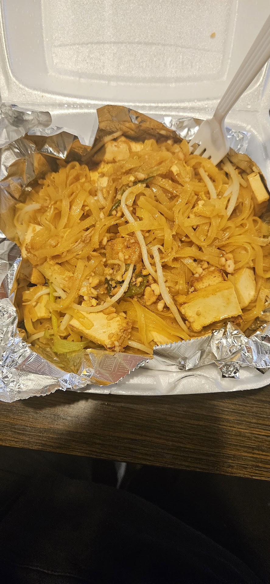 Read moreThe service was excellent, I ordered takeout but decided to dine in and the man was very easy going and polite. The restaurant looks clean and is a comfortable space to enjoy a meal. Even though I ordered take out, when I was eating in the restaurant he offered to fill my water container with ice multiple times. I ordered the pad thai with extra toufu and the portions was massive. You can easily feed 2 adults and a couple of children on the pad thai alone, the taste of the pad thai was really different then most places in a unique way. It wasn't as much sauce as I anticipated but had a good balance. The toufu was also a good bite, only recommendation is I wish the dish as more flavors. A little more peanut and other flavors and the dish would be...