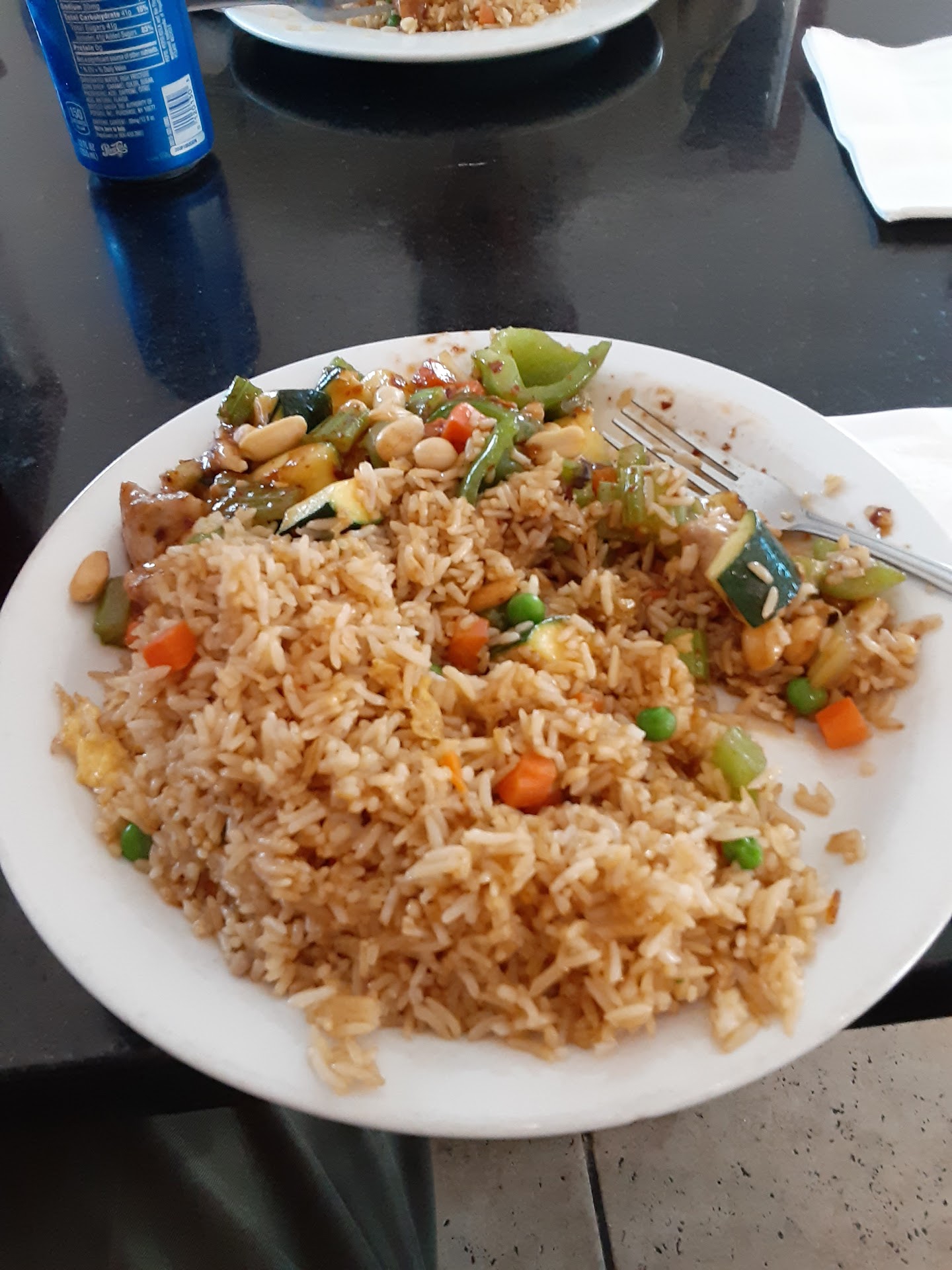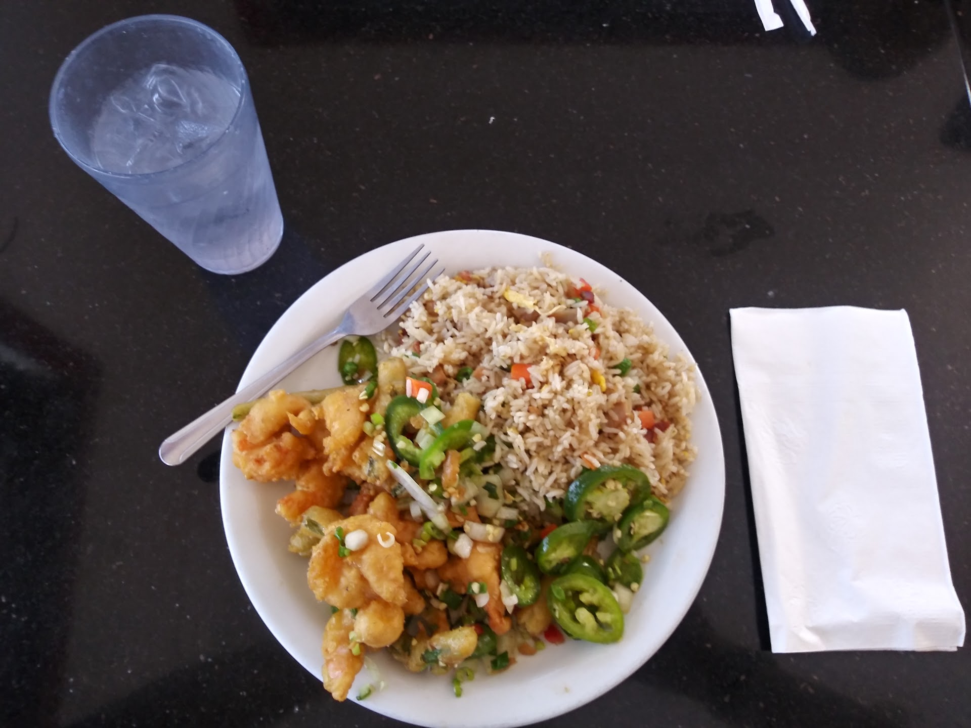 Read moreWe had used the Groupon to check-out this restaurant and decided to go here for dinner. Boy this neighborhood is dark and sketchy at night. I thought I had driven to the wrong place. This restaurant was in the middle of nowhere. It appears that the owners where the one working the "front" counter. It was a bit weird, this restaurant is small and had this take-out vibe/food court type setting to it. They had a TV plastered to the wall. After our food came, one of the guys (or owner) at the counter said, "Are you watching this?" Was I to argue with him and say, "No, don't change the TV, I'm in front of it and can't you see I'm watching?" attitude? So I waived my hand, "no", since my mouth was full of Honey Walnut Shrimp and fried rice. It was good albeit not the best I've tried. My daughter wanted the Orange Chicken. It was not bad until I bit into an orange peel. My daughter bit into a couple of them. And then there were more orange peels. What the??? Are you serious? This orange chicken should have been called "Bitter Orange Chicken". Please take the peel off this food, won't you??? It just simply should not be there. If you want to add orange skin, then please use orange zest and not pieces of orange skin. Fail on...