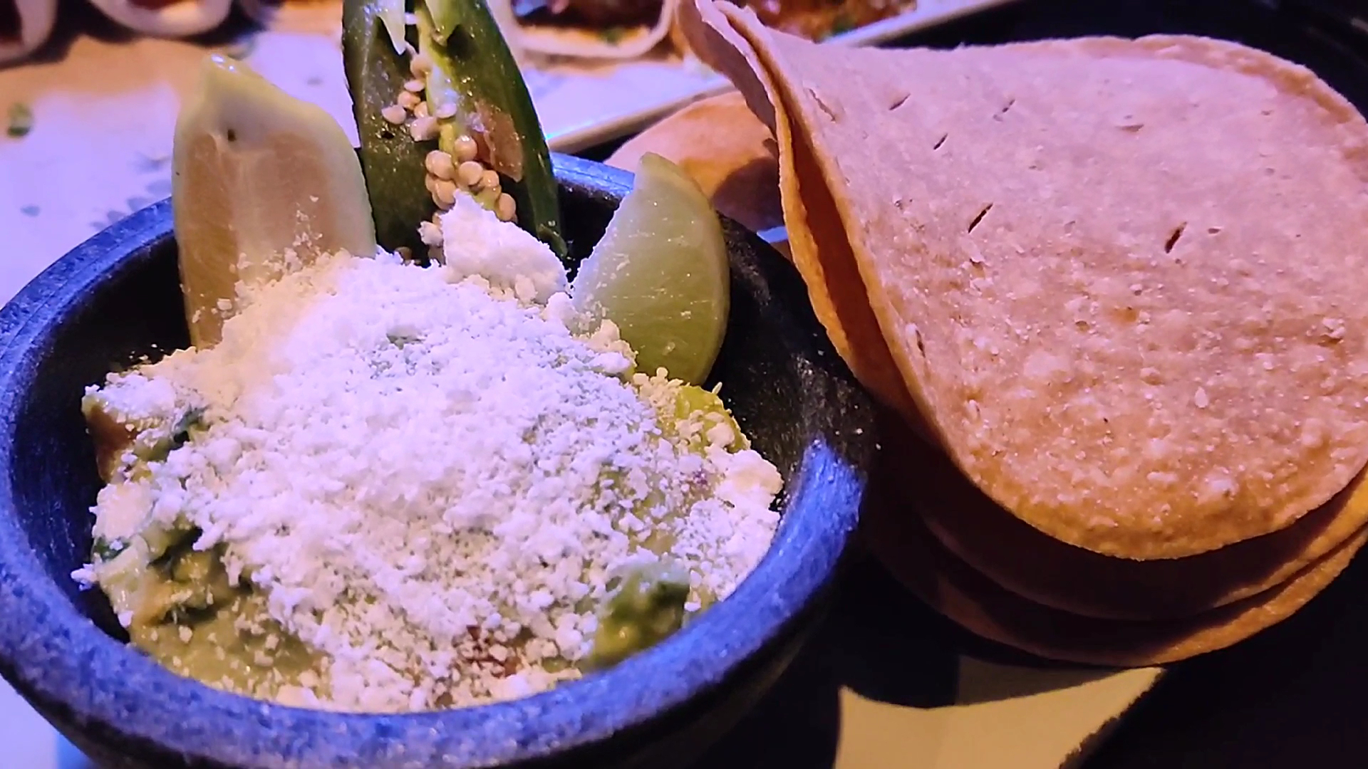 Guacamole is a nice appetizer and pallet cleanser. Guac is fresh, creamy, and again nicely balanced. Not to much acid or salt. The grated cheese also compliments the guac nicely.