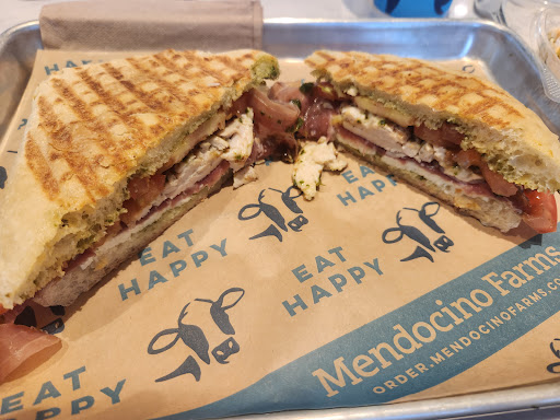 Stepping into Mendocino Farms at the Freeport location for the first time, I was greeted by a lively atmosphere and the enticing prospect of a culinary journey, thanks to their commitment to fresh ingredients. This set the stage for what I anticipated would be a delightful lunch. The menu was a testament to creativity, offering a diverse selection of sandwiches and salads designed to satisfy various tastes. The chicken sandwich, a classic choice at many restaurants, typically promises a pleasing crunch and a balance of flavors. At Mendocino Farms, however, my experience was somewhat inconsistent. Although the ingredients were undeniably fresh and the bold flavors typically found in their sandwiches were present, the chicken sandwich was excessively crunchy to the point of being noisy while eating. Despite this, the quality of the chicken was not diminished; it was tender and flavorful, and the accompanying sauces and vegetables created a harmonious blend of tastes. On my next visit, Iâm inclined to try a different sandwich. Service-wise, Mendocino Farms excelled with its amiable staff and streamlined ordering process, reflecting their dedication to ensuring a positive customer experience. Even when my colleagueâs dish was accidentally served to another customer, the staff promptly offered to prepare a new one, further demonstrating their excellent service. The outdoor seating area was picturesque, but I found myself wishing for adjustable umbrellas to provide better shade coverage, as some spots were left exposed to the sun. Overall, while there were areas for improvement, the visit was a...
