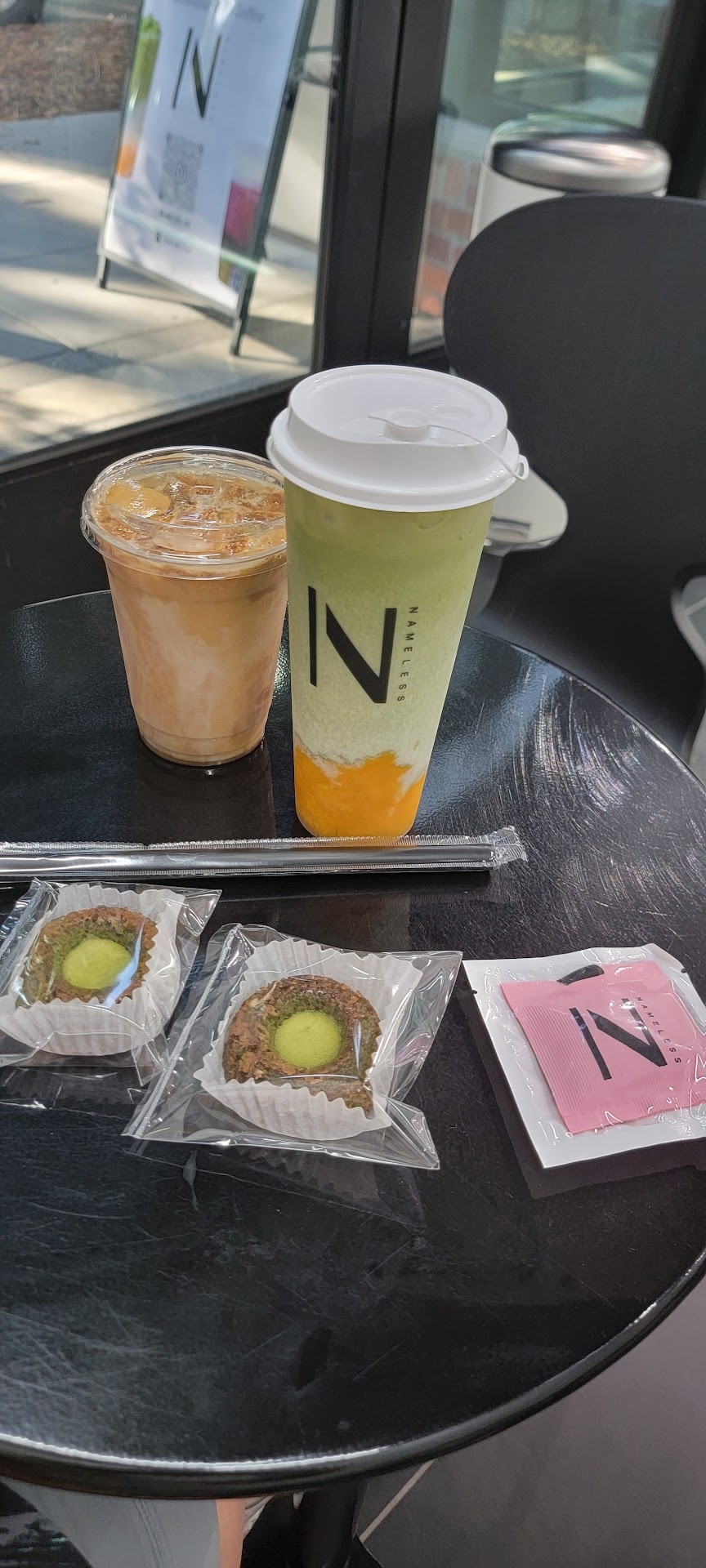 The drinks were great and a ton to choose from with options for modifications and what not. What surprised me was that their snacks were pretty darn good. The only thing featured in their menu are the macarons though which also looked great but on their display were these really tasty finger food snack. The lone employee there was also very accommodating and great. Seems he was slumped by orders but was still really kind to respond to our inquiries and what not. Overall awesome place to get...