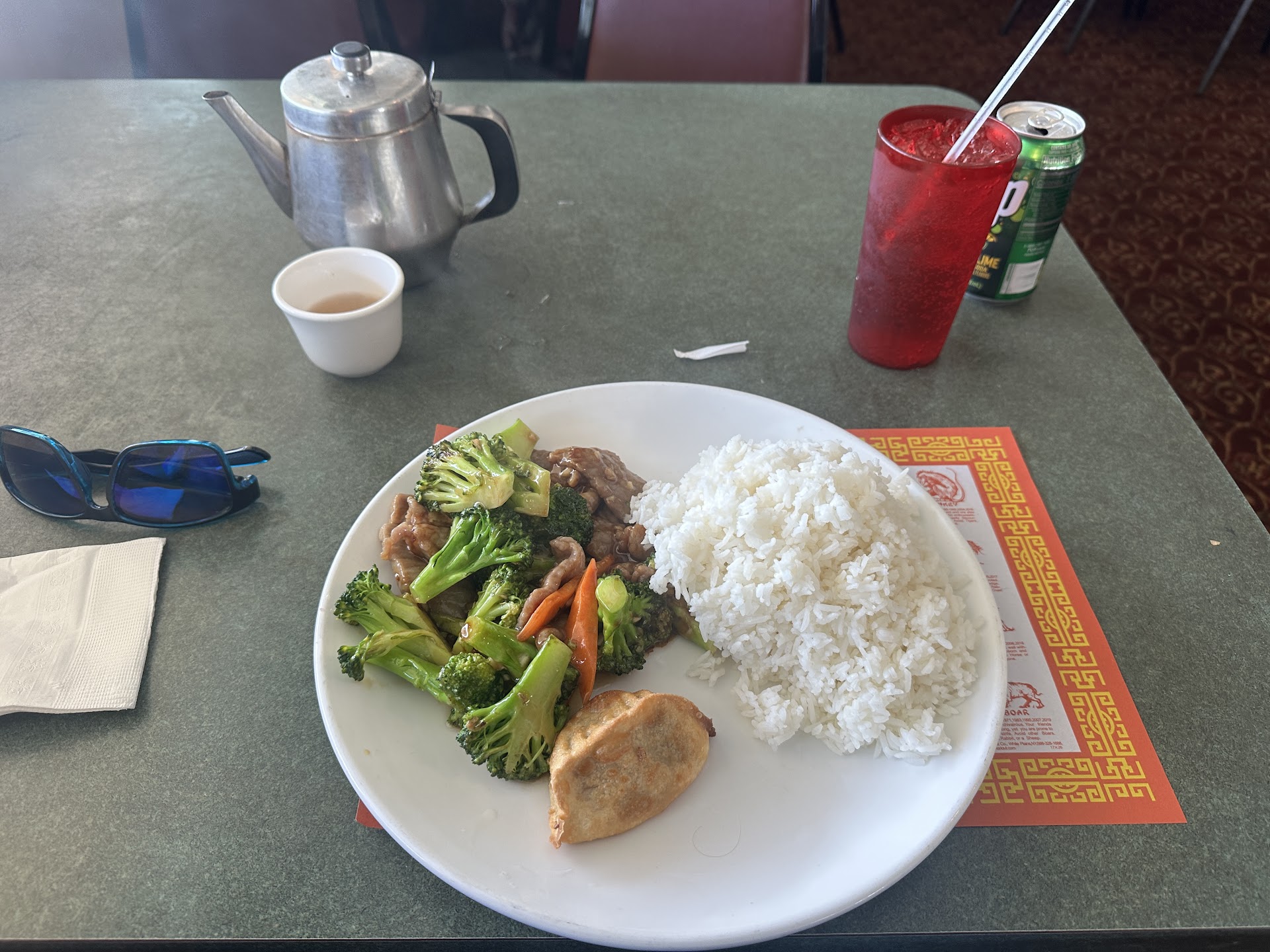 Pros Super low prices. Paid $10 for a broccoli beef lunch special and 2.50 for a can of soda. Large portions Free tea Service was quick and the waitress was nice.