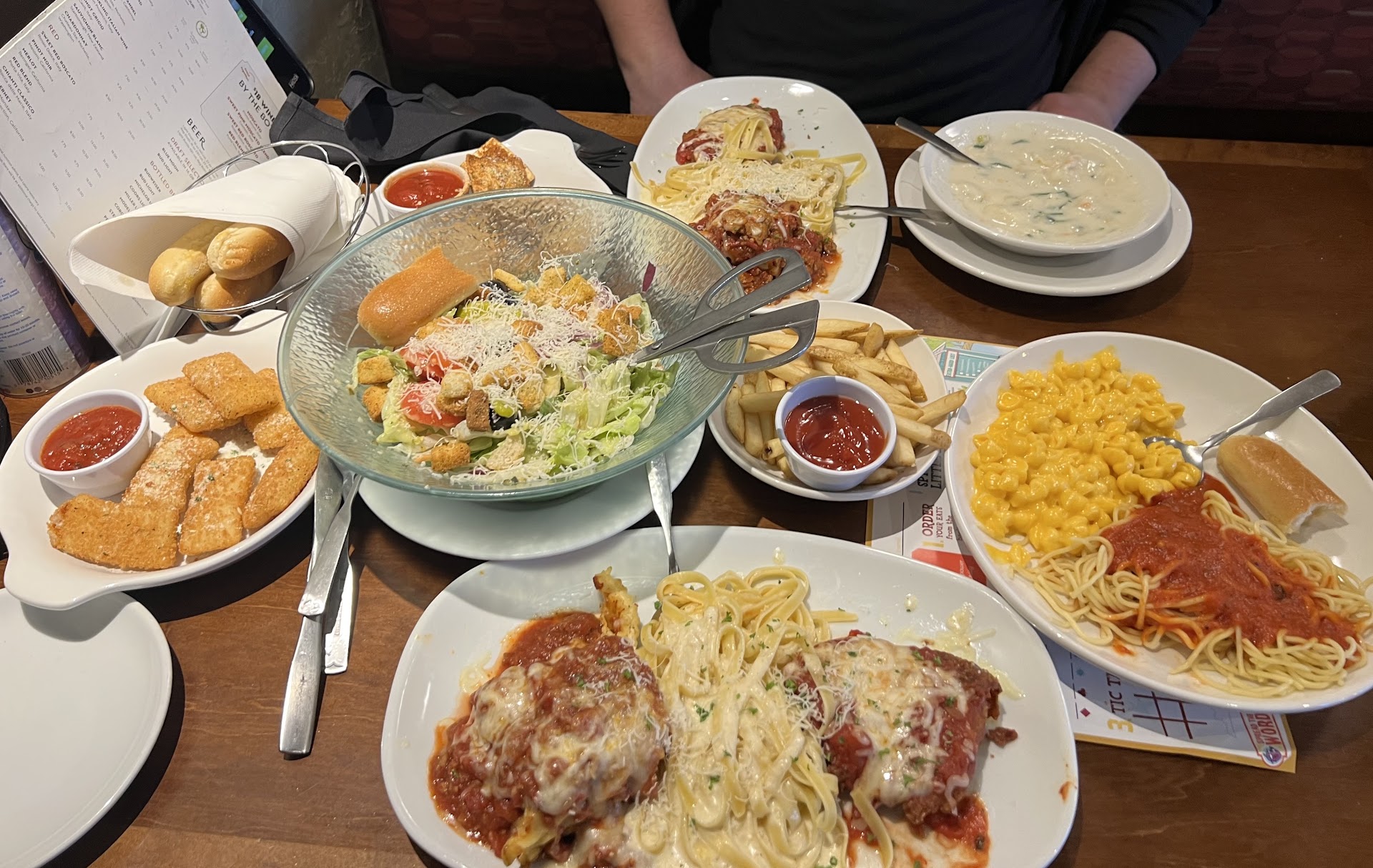 Since we waited so long we just ordered everything at once, it took a while to get the drinks and bread sticks, we almost thought we had been forgotten about again but eventually they showed up. By this time the table beside us that had been seated after us was already boxing their food and getting ready to leave.