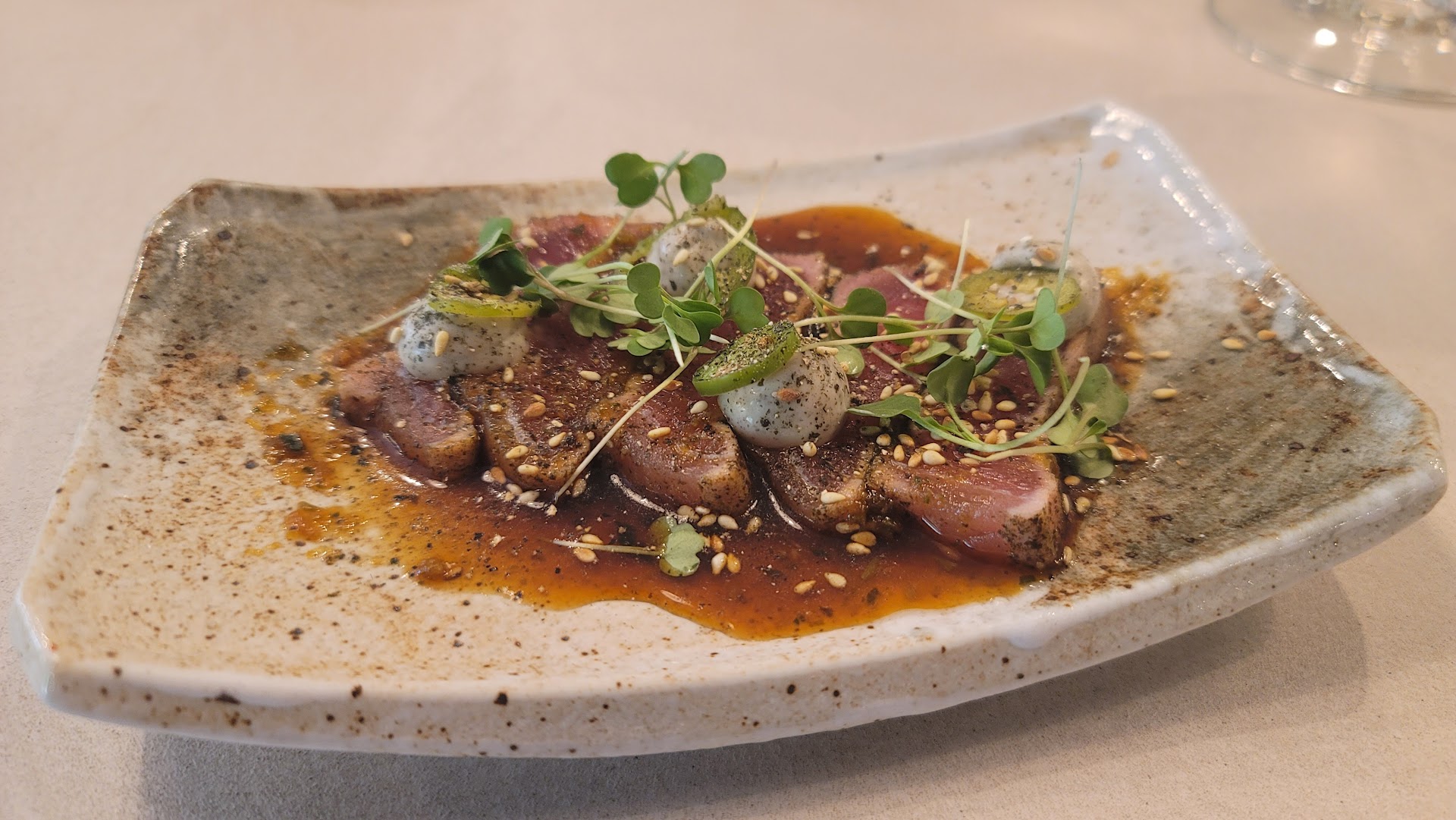 Read moreThere are some dishes which are tasty (ie the Tuna Tostada, tuna tar tar, scallop tostada). There are some other dishes which were okay, however grossly overpriced. I feel like the restaurant should be re-branded to "Tapas" por favor. I get that they're trying to get people to do the omakase menu, but when I think of omakase, I'm thinking nigiri sushi, not a tostada or mabo tofu.