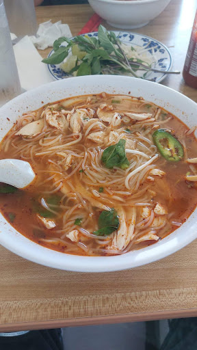 Came here with a Vietnamese friend of mine, both our first time there, it was given a high rating on SN&R but we were both disappointed with everything. There were lots people there which is a good sign, but we were sat next to a cleaning supply cart for a few minutes which smelled pretty bad. Someone took it away and it got better after a while and when we thought we would get a menu, we were told they only had 2 choices chicken or beef. Food came out pretty quick, and the add in also, but there was only 1 wedge of lime for the both of us, which isn’t enough for the pho, and there was only 1 dipping plate so we got some from another table. Besides the lack of limes, the pho wasn’t horrible but still was missing some flavor, and the broth was pretty cloudy. Over all thou, not impressed and was more pricy than other pho places that...