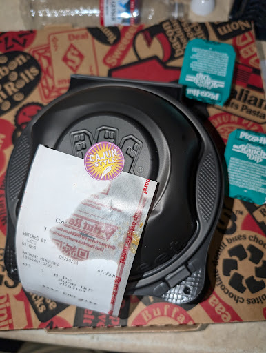 Greetings to the hungry people there 🙏🏼🤒🤒🤒 4 /12 en la noche Deben de darles a cada empleado su comida, O tener personal que no se queden con las órdenes de DoorDash Llegue a recoger un pedido Me tuvieron esperando más de media hora No me dieron nada Pero a la app le dan por entregado al pedido Y se lo roban los empleados Deben tener más cuidado con el personal No estén contratándoselo esa clase de personas roban en pizza hot y poner a los usuarios como ladrones, Co el tiempo de espera Para que la app te diga que el empleado reportó que tu recogisteis el pedido Saludos para las personas hambrientas de allí 🙏🏼🤒🤒🤒