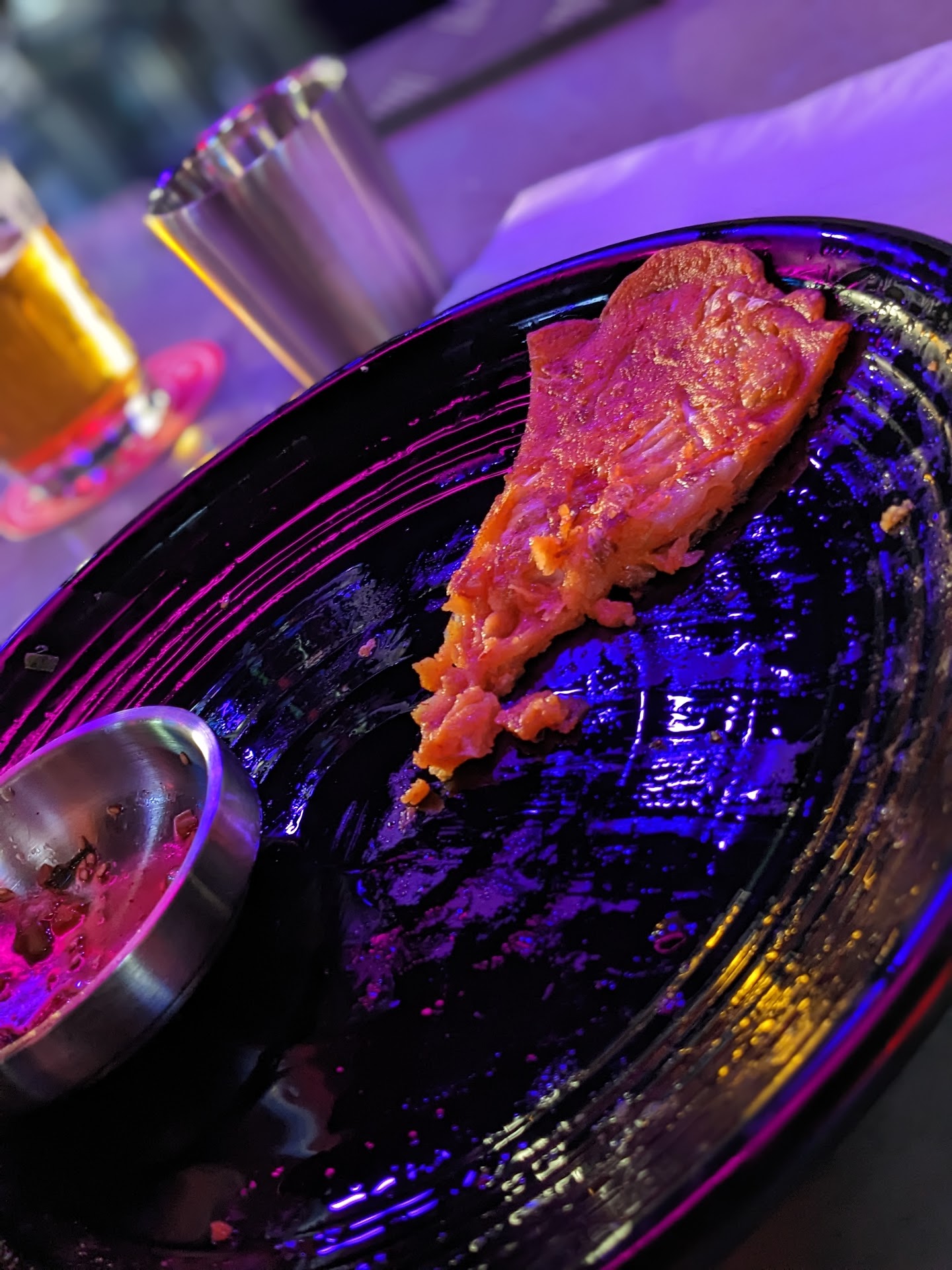 The wife and I walked over this evening for light bites and cocktails. The vibe was cool (I dislike bars in general) there were cool neon displays on the ceiling. I liked that they had cast the TV to the brick wall, very cool. Having been here when it was the Pour House and another name which I forget... I was happy to see that this was the cleanest setup so far.