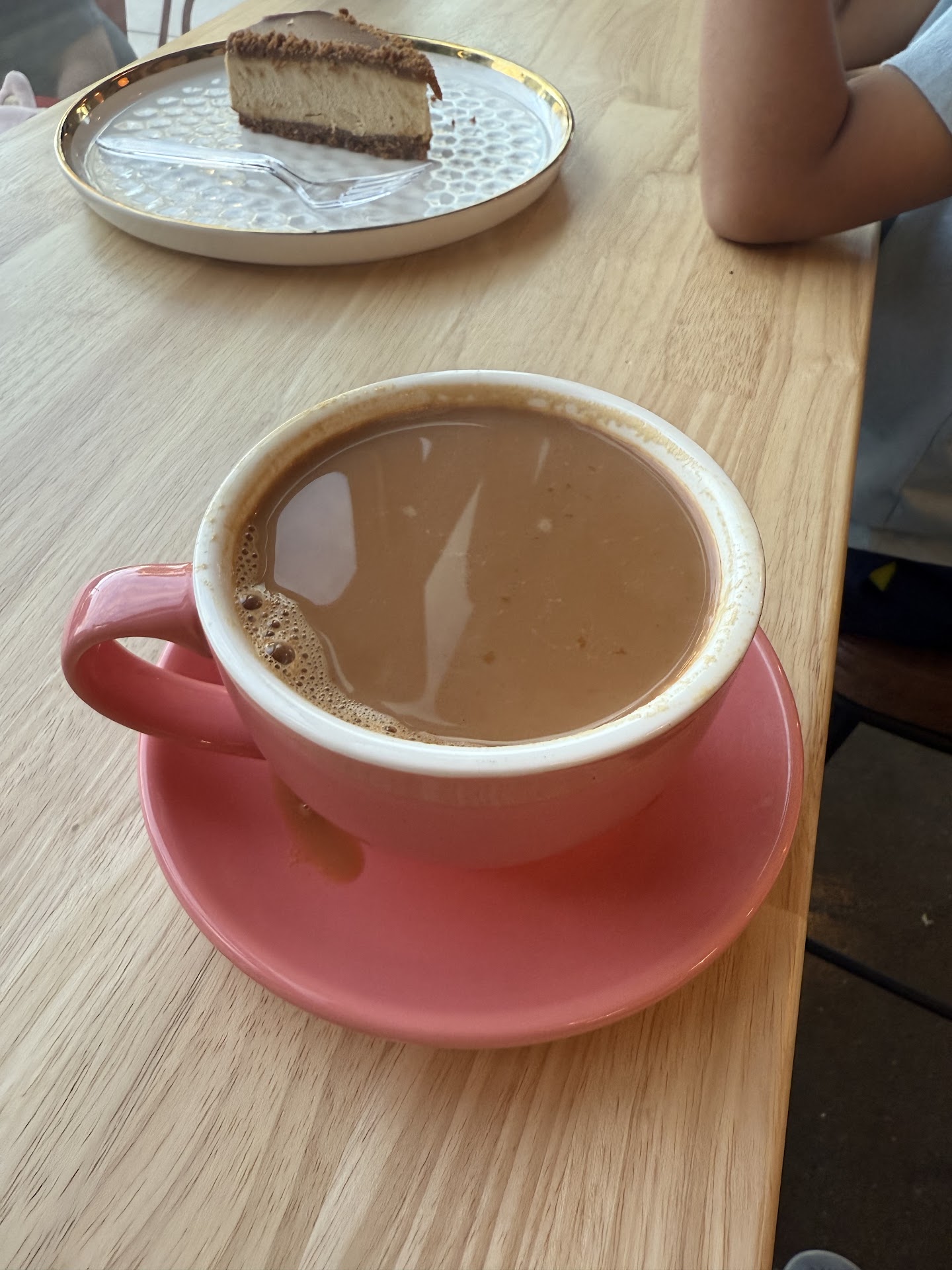 I ordered the karak tea along with a slice of cheesecake. Both were outstanding! The tea had a unique, flavorful taste that felt authentically Mediterranean, though individual tastes may vary, of course. The cheesecake was equally delightful, perfectly pairing with the tea.