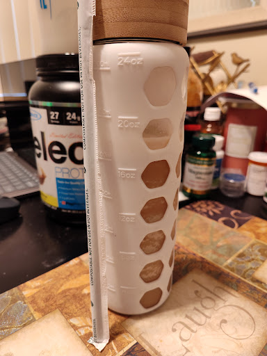 This is a supposedly full cup... a $7 Grande Latte. In the past this was my biggest complaint. This time another customer complained to me their drink was less than the small that sbx calls tall. I told her that is a frequent occurrence at this store. After the manager threatened me for not filing out the form in the app right and refused service, the next customer was afraid to complain but...