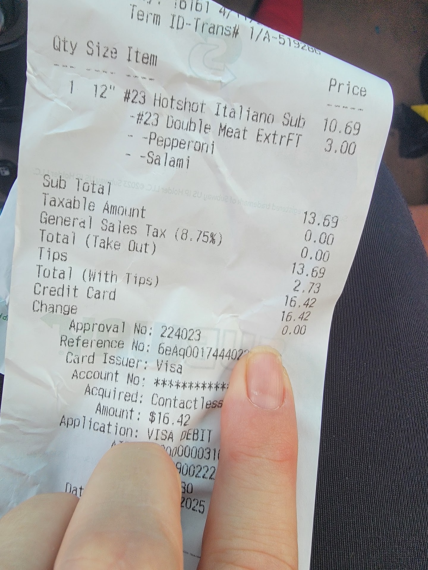 I don't know where to start so I haven't been to Subway in a while for the reason being I've been going to Sourdough and Co. I received coupons so I decided let me comeback to Subway let me start by saying this location only allows you to pick from 3 Sandwiches when using a coupon and that thin layer of thin meat they give it's not even worth using the coupon or wasting your time. Might as well been a veggie sandwich cause that's all you can taste and tomatoes soggy lettuce wilted and brown this Subway needs to know there is competition out there and they need to hold up Subways brand name before they go out of business. The older lady that works there has been giving me wrong information on coupons and what Sandwich to get so called another Subway they had told me I just couldn't get the number 30 and 7 sandwich. Thus location you can only pick from 3 types of sandwiches so yes I'll drive a little further on my lunch to go to that other Subway. There was a young lady that worked at this location and she was awesome she handled the weekend rush and was calm under pressure and she was working alone with doordash and customers waiting she was great. Now that's...