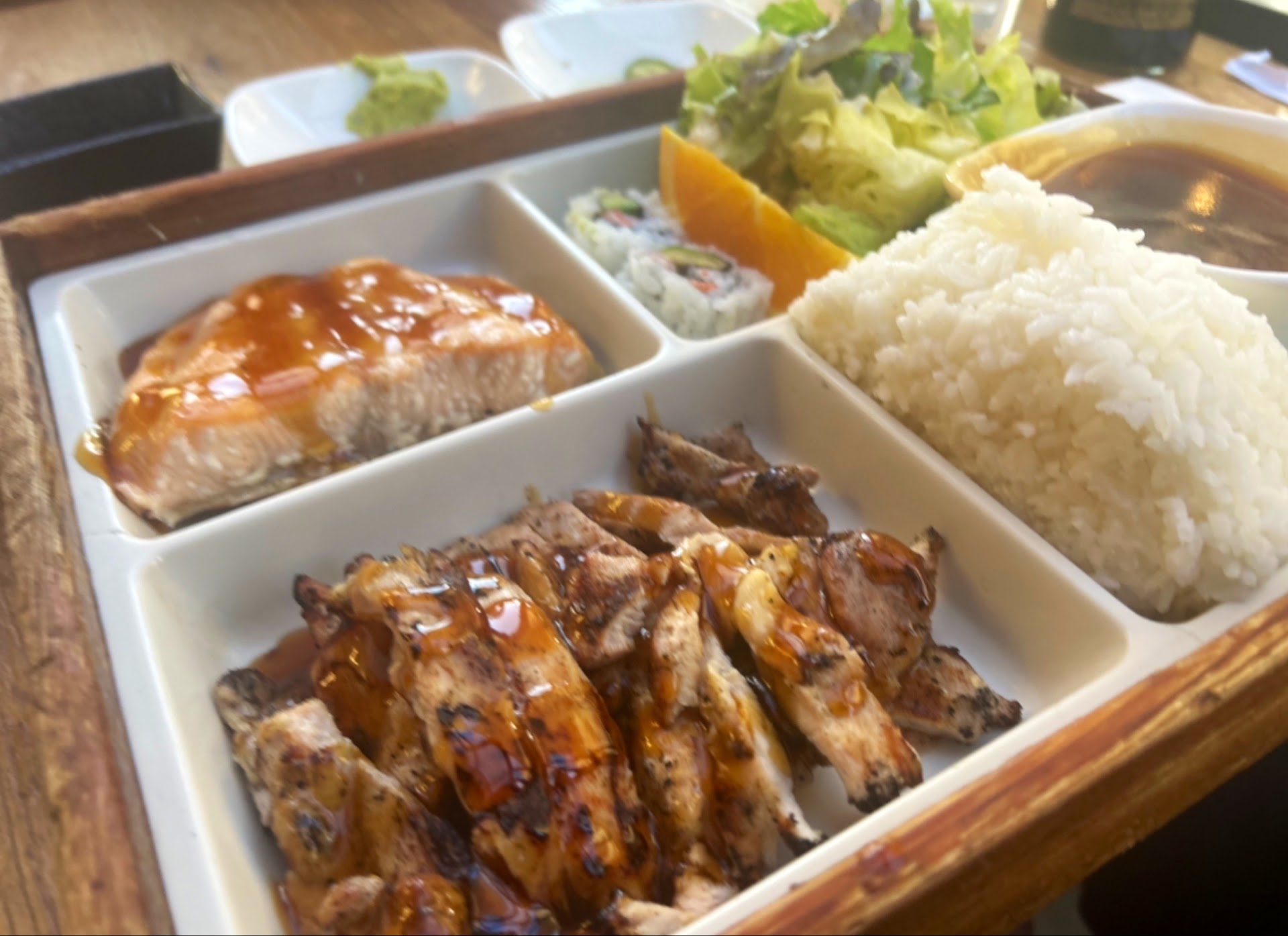 The shrimp tempura side dish was the best I’ve ever had. Lightly battered and shrimp so tender you can cut into small piece using chopsticks with little effort. We were able to get two drinks, one bento box meal and hearty creamy maguro roll made spicy and the appetizer for less than $32. The roll was so soft it melted in my mouth. The bento box was served with two main items and we picked curry chicken and tonkatsu pork. Very tender. Extremely good. It came with a miso soup, small green salad, california rolls and white rice. Delicious. Loved the miso, not two salty or over powering.