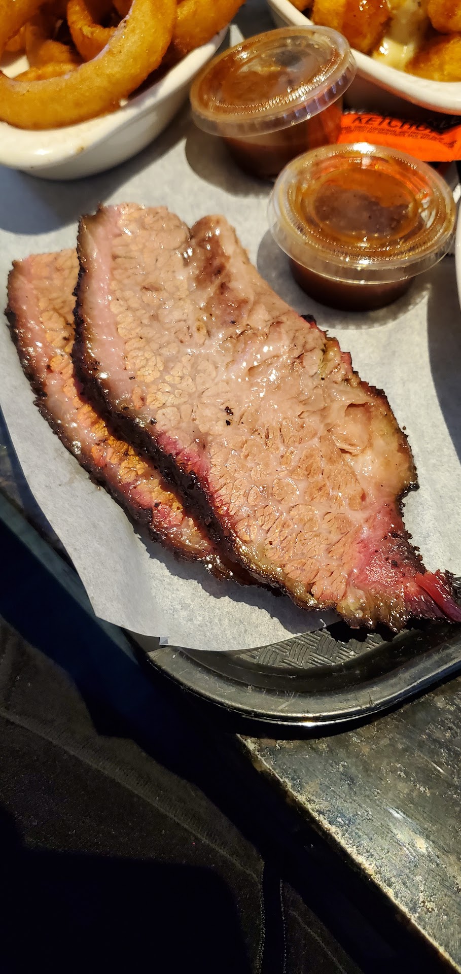 Read moreWell I got hyped on the food as being one of the better BBQ places in sac. I got the midtown feast ($100) with two sides: onion rings and tater tots. My issue with midtown feast is that it comes with no sides unless you think of the onion rings as one. I personally find that pretty baffling because all the other bundle/specials have sides LOL so this meal turned out to be a bit more expensive than I thought for a bbq meal. Midtown feast doesn't actually feed 6 people unless you think 1/4 hot link, 2-3 ribs, 1/4 brisket, 1 of either HALF a chicken breast or thigh, some pulled porks and 2-4 onions ring would feed someone. The answer was no for my group so that was a bit disappointing because sides are usually the fulfilling ones.
