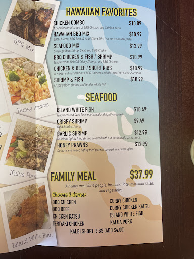 Read moreI ordered the ribs they are good but i feel like they can be cooked a little longer cus they were a little chewy and it started to get stuck in my teet other than that i give the food a 7 i really like the macaroni and veggies thats a big plus and the place is clean but the signs everywhere make it kind of uncomfortable. The soda machine is turned off and will be turned on when asked to wich is weird. I get it homeless come aeound but if you see the customers are coming in keep it on.. i also moticed the small portion of siracha that is sold for 50 cents, this is another low cus how you charge for salsa something not even prepackaged and you dont show the brand you are using. For extra sweet sauces i get it but Sriracha cmon thats like charging for ketchup lol. I think if the place would remove so much of the the hand written labels it would be a comfy spot to go and eat cus it looks like some people eat and go or take it to go. I do really like the food the shrimp was good the katsu was good also but some things like a friendly hello and welcoming feel would be nice for giving you guys some business something like a appreciation cus the people never say hi i always walk up to the counter and have...