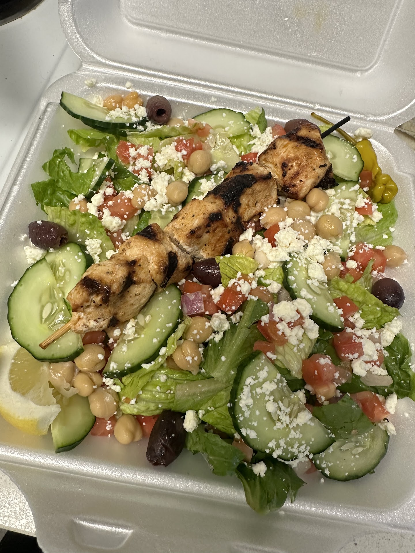 Everything we had are really tasty: avgolemono soup has the perfect balance of zest and comes with small chunks of rice and chicken for a really nice comforting feeling. the steak souvlaki and the lamb souvlaki are really good. The meat is tender and cooked to perfection medium rare. They’re both really good but the lamb is the winner. salmon plate is ok but a bit underwhelming compared to the steak or the lamb, but still good. the feta fries is a good for sharing with the group as it comes with a heaping of cheese on top. dolmades are also good and not overly sour.