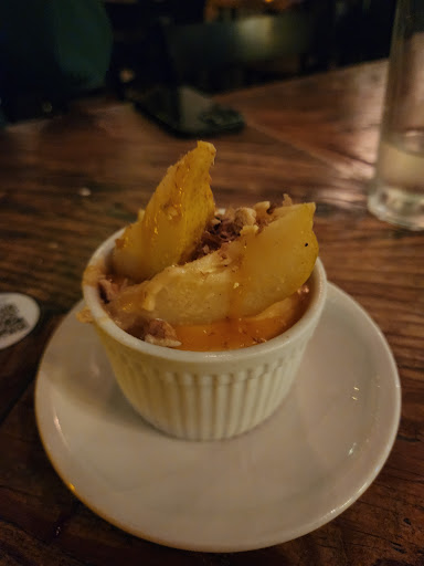 APPS Alpeño 4.6 Bermuda Polenta 4.5 Bright & Briezy 3.5 Wanted more Brie & Apples Burrata 5, 4.9 creamy di Stefano burrata 4.8, cashew butter 5, candied fuyu persimmons 4.8, chili onions 4.8, kale crisps 4.7, butter grilled french baguette slices 4.3 Christina prefers with late harvest wine Butternut blues 4 could use more gorgonzola Tomato Burrata Cup = 3.9 prefer the old Burrata dish but this is still solid