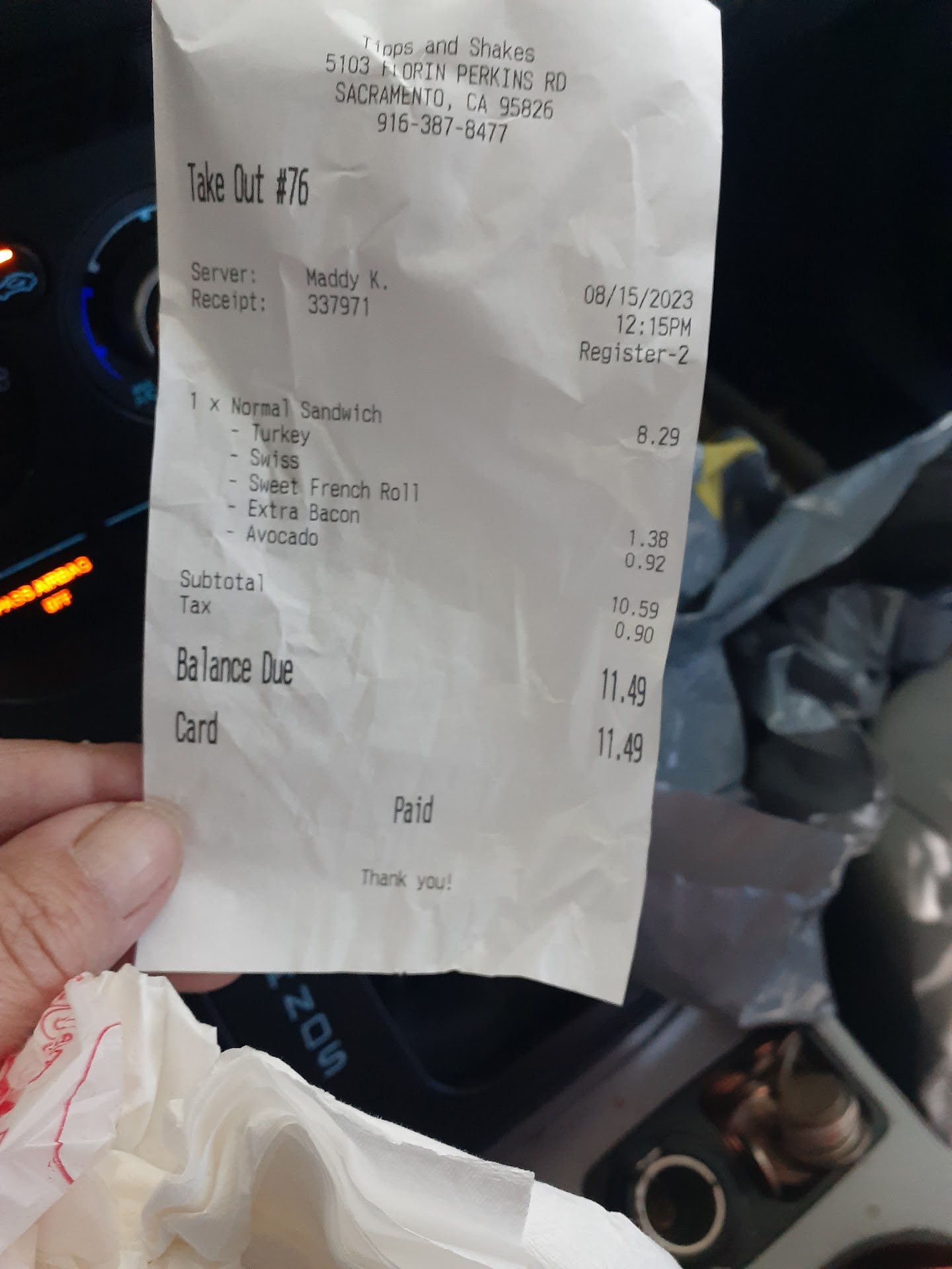 The negatives: Tipps does not cater to custom creations, even when there is no one else seated or standing in line. I asked the stick in the mud (see below) at the register if I could order a tuna melt, which I was denied with rolling eyes. Tipps offers paninis and they offer tuna fish sandwiches, but they refuse to grill a tuna fish sandwich. Next time I will ask for a tuna panini.