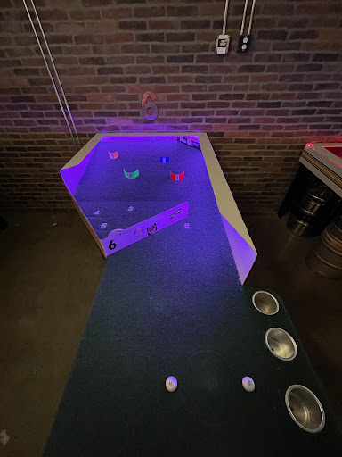 They have a wide variety of craft beers. Don't feel intimidated because if you are curious about any of them, you can ask the bartender to give you a sample of a few so you can make your decision. Once you've made your decision you can go play duffleboard or mini golf. The cool thing is that each duffleboard has a spot for you to put your drinks while you play which is pretty cool.