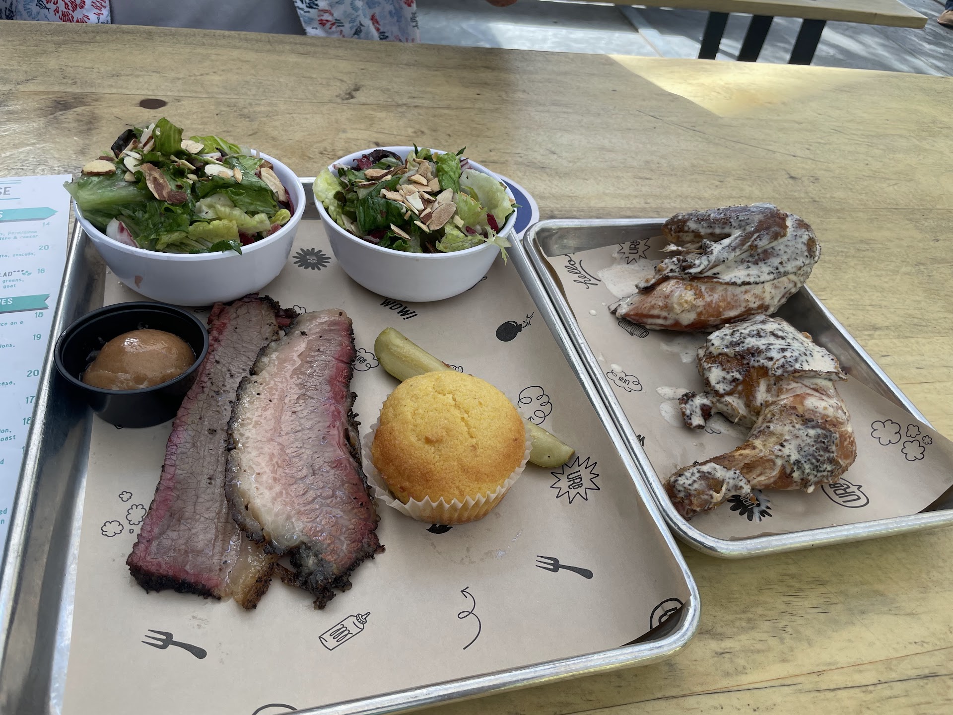 Food: The brisket and burnt ends were… fine. You know that feeling when you’re expecting fireworks but get a sparkler instead? That’s the brisket. It’s tender, sure, but it’s also a little shy in the flavor department. Luckily, the house BBQ sauce is there like the hero we didn’t know we needed, swooping in to save the day.